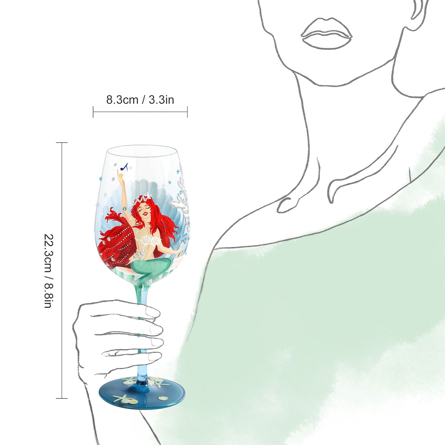 This wine glass is originally designed by the NymphFable design team. The beautiful mermaid sings in the ocean, which will bring you a sunny and good mood as if you were on holiday by the sea.
