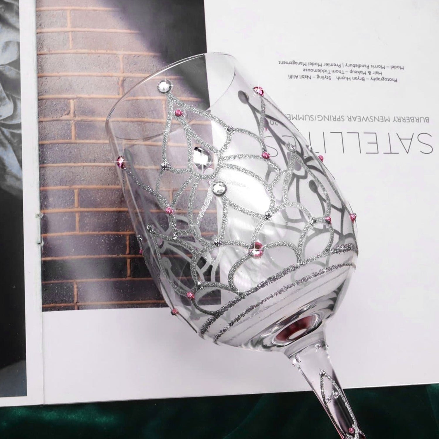 Be Careful: Our beautiful wine glasses are crafted with hand-painted designs and crystal accents, hand-wash only. Glass size is 8.8 x 3.3 x 3.3inches. Holds 15oz.