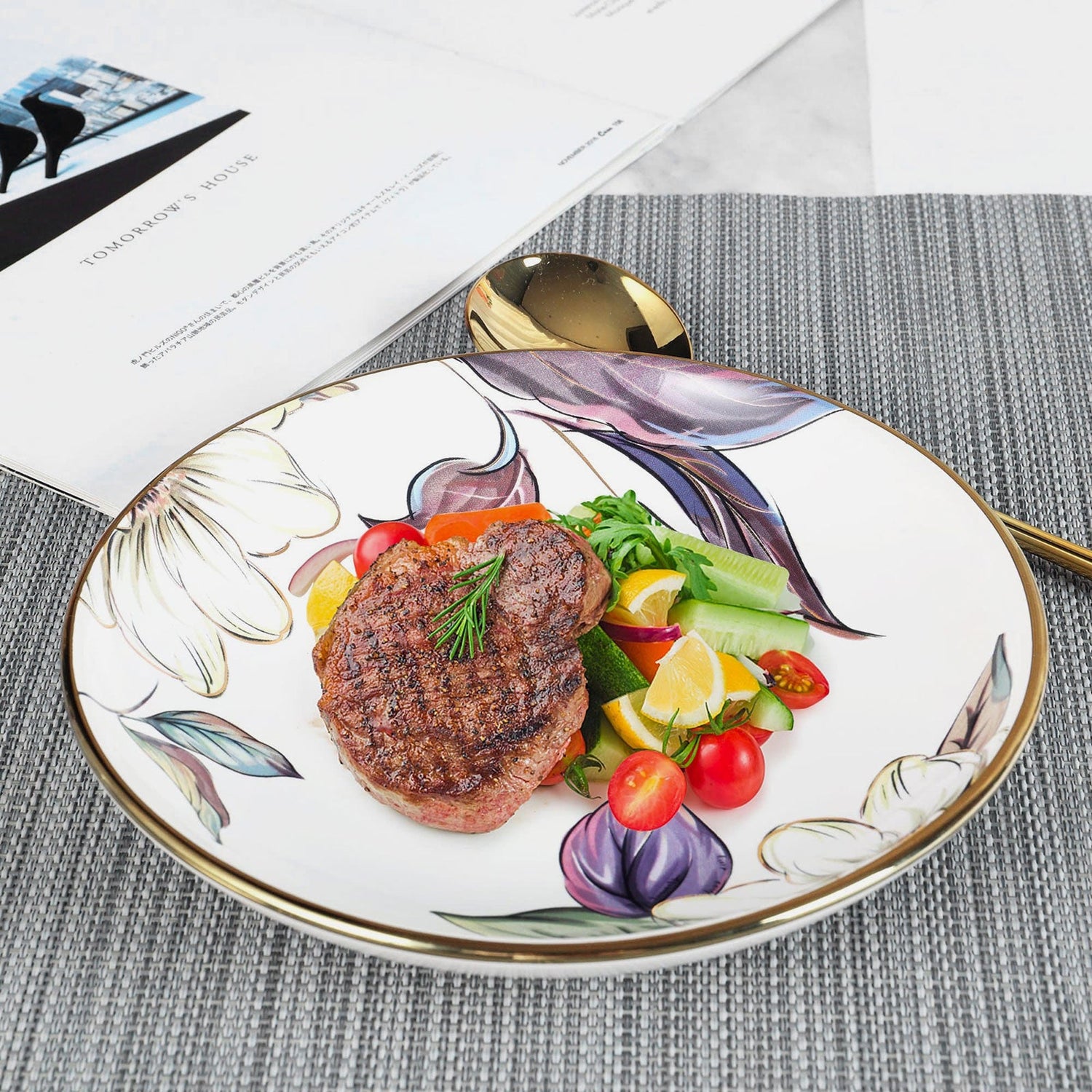 This dinnerware set is made of fine ceramic material, safe and can be used repeatedly, stacked together easily