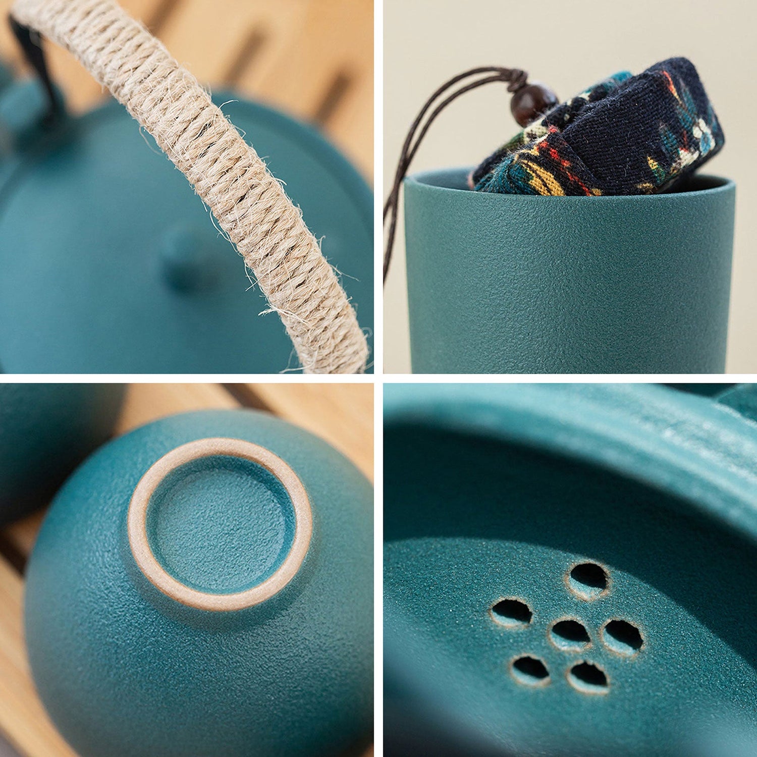 PACKAGE: Comes with carton package, including 1 teapot, 4 tea cups, 1 tea canister, 1 tea tray, 1 travel bag, tea towel and tea pod. The porcelain tea set is packed with foam and shockproof box to prevent broken in shipping.