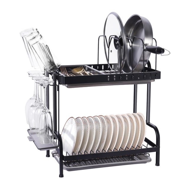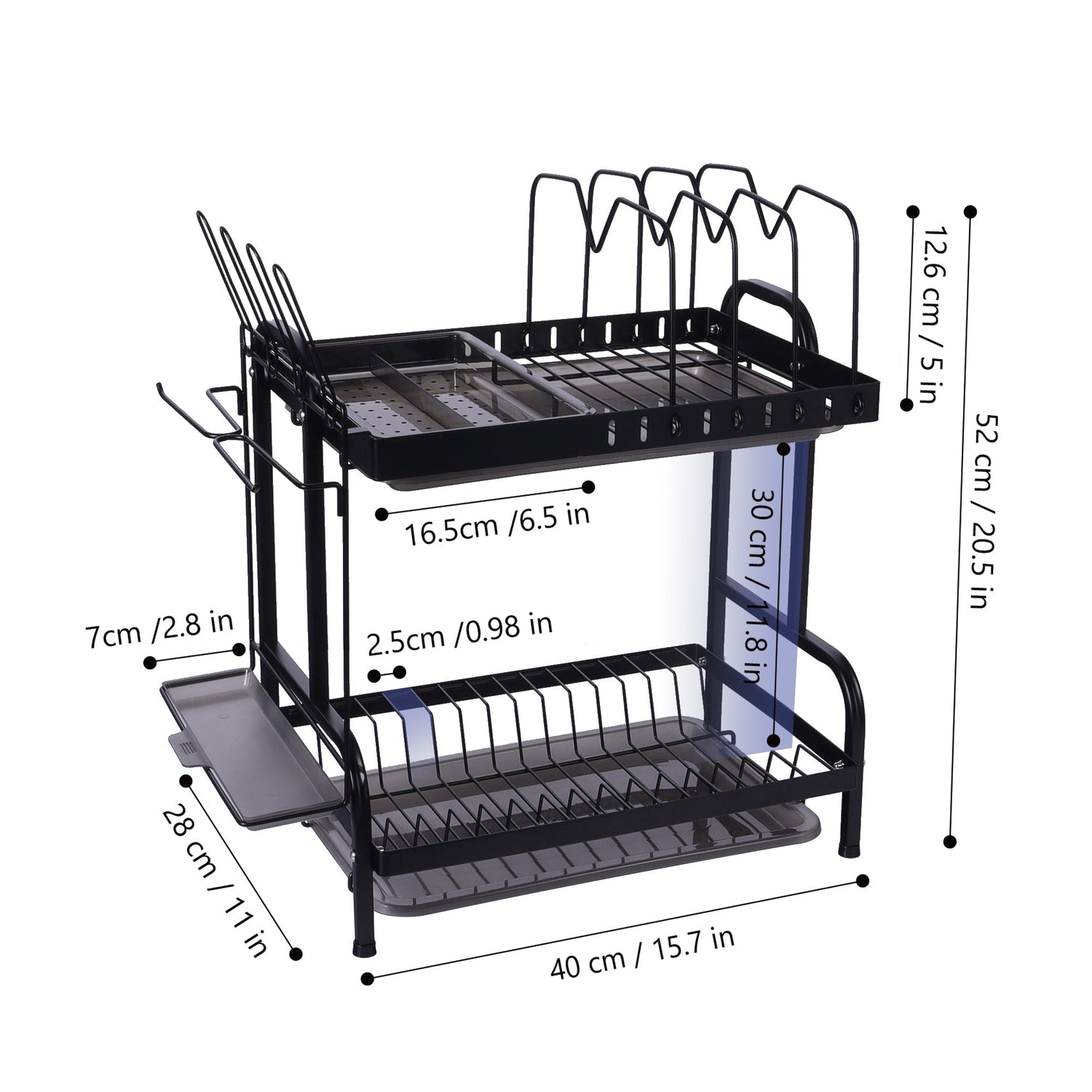 Sturdy Adjustable Rack: The two tier dish drying rack is designed with "H" shaped frame by square tube with anti-slip feet cushions ensure it stable and balance, adjust the spacing of pot rack according to your pot.