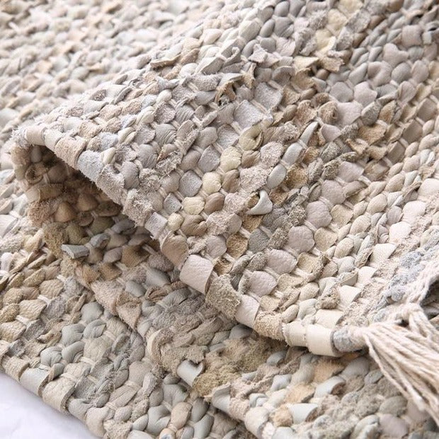Embrace the look of leather with these hand woven leather accent rugs. Give any space a modern look with the look of leather. This rug creates a casual look in a modern way to give any space a look of sophistication. The rug can be mixed and matched with other textures and patterns to complete a modern look. The rug size makes it a great accent for a doorway, bedroom or anywhere where you want to a splash of the casual modern. The rug comes in several colors to complement any space. Enjoy the look of leather.