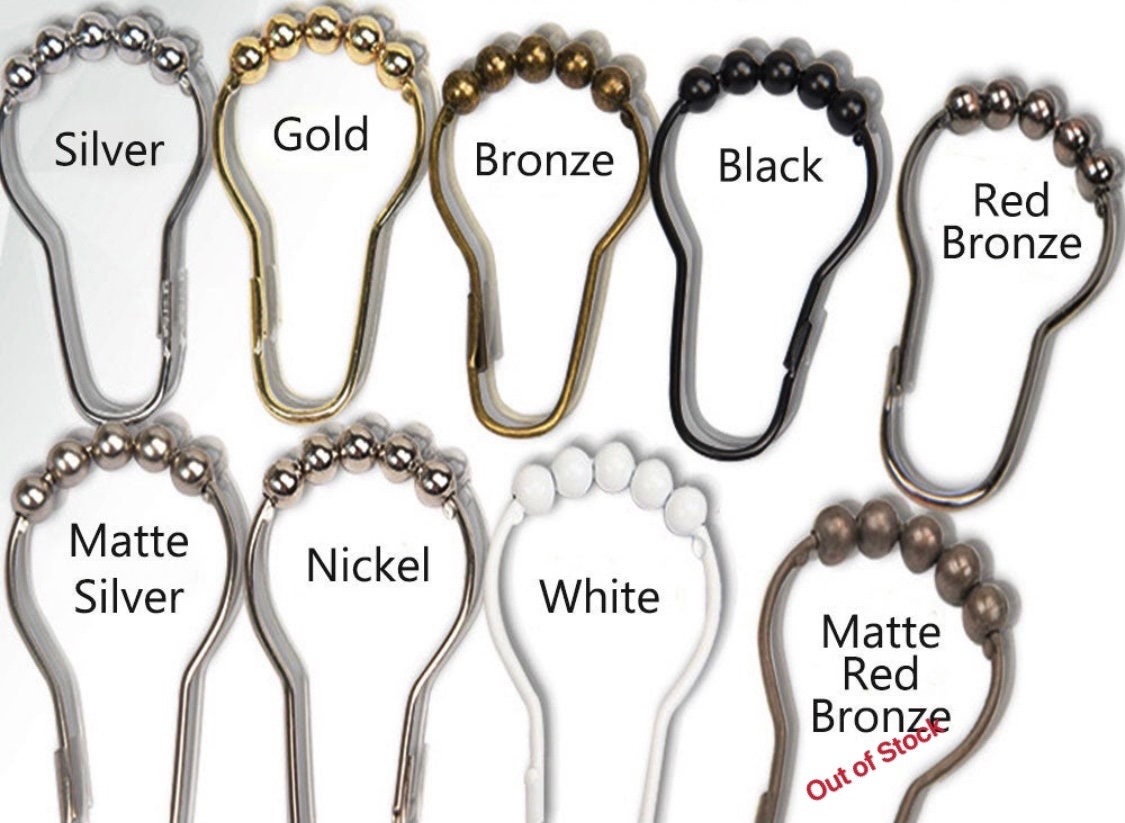 ·12 standard C-shaped plastic curtain hooks included and you may also choose metal hooks with extra fees.