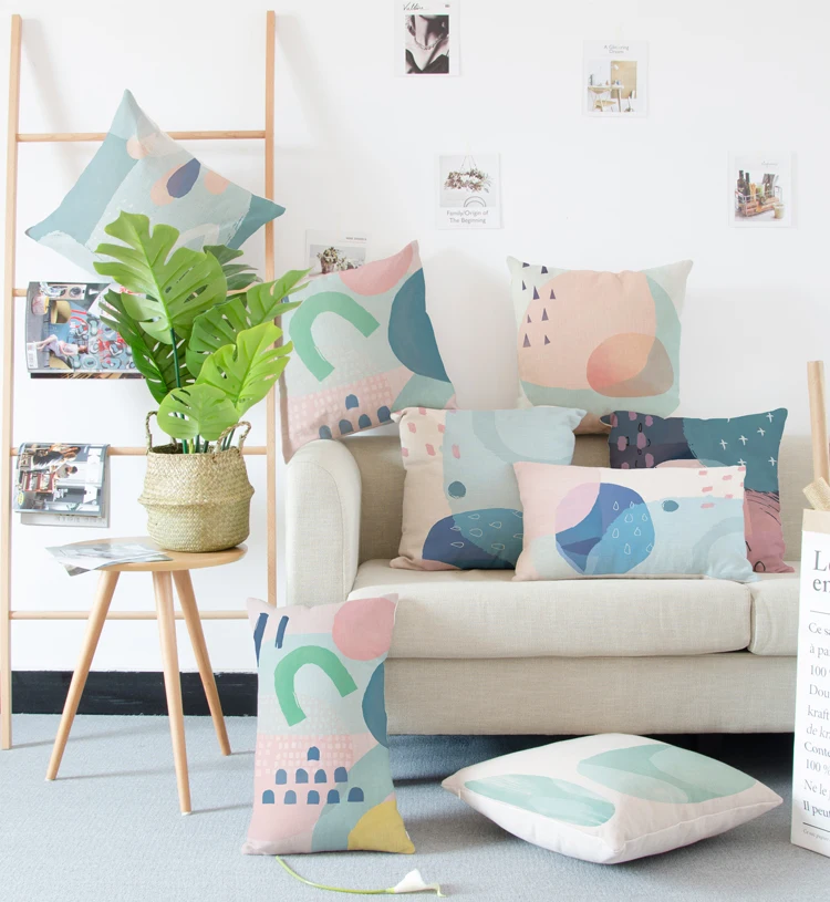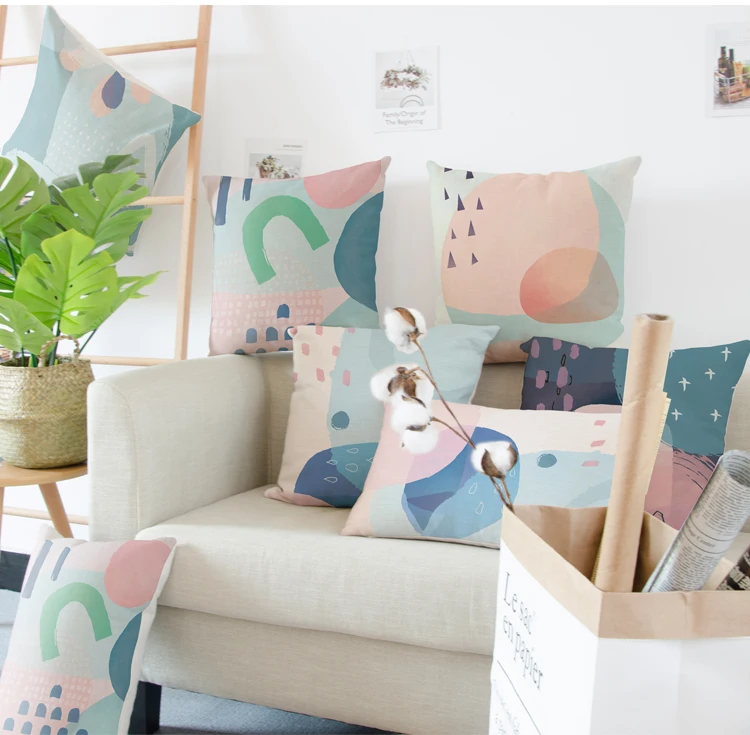 Modern Minimalist Abstract Cushion Cover Hand Paintings Sun Raindrops