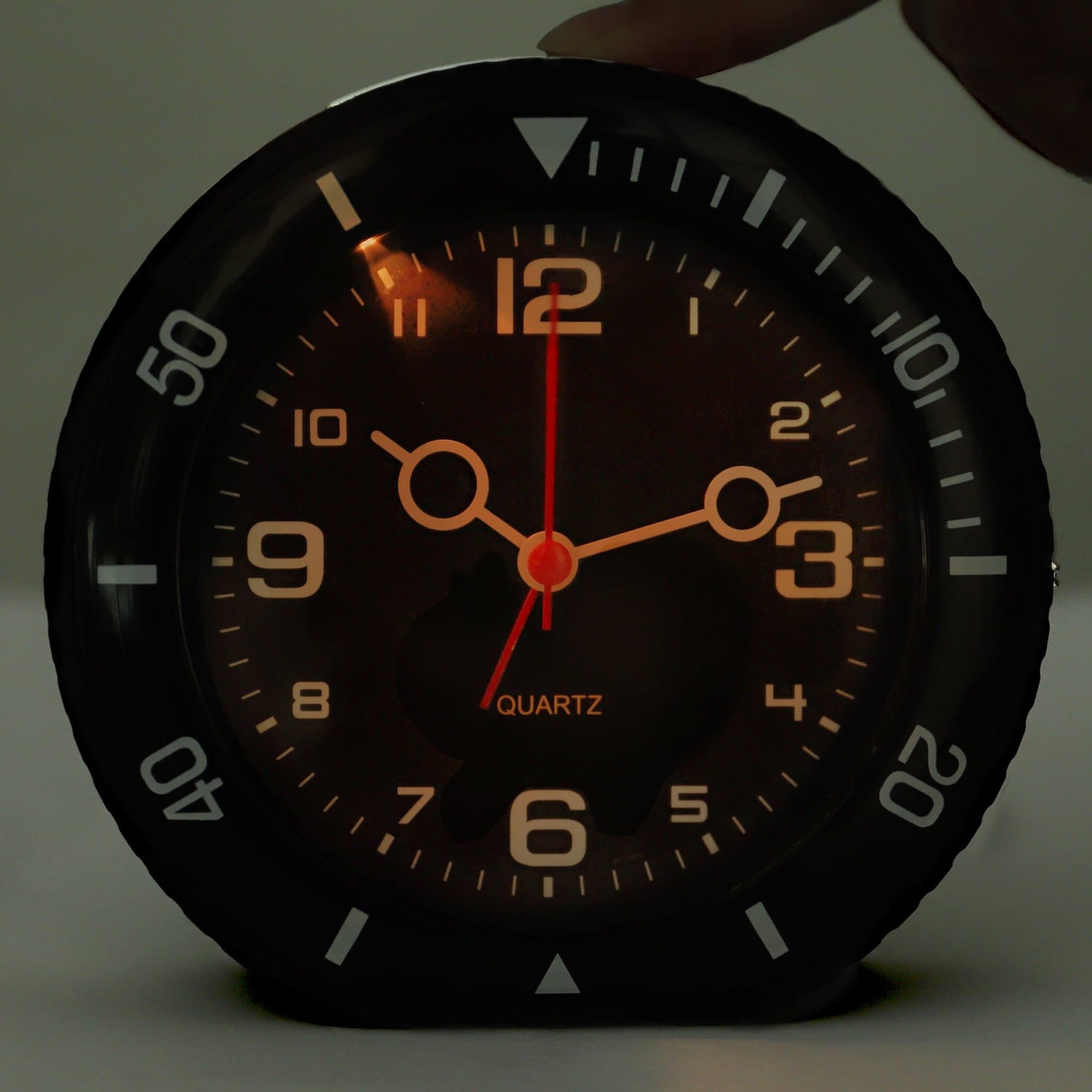 Press the night light button on the top of the alarm clock, the gentle warm yellow light will glow across the entire dial, which makes it clear to see the time at night.