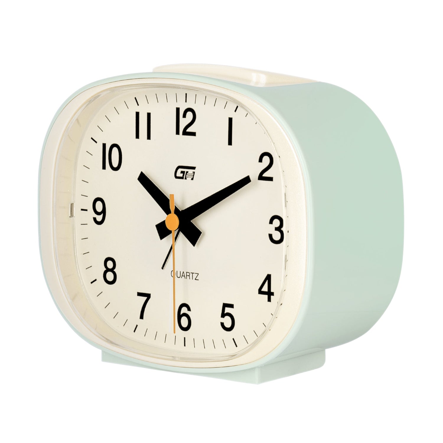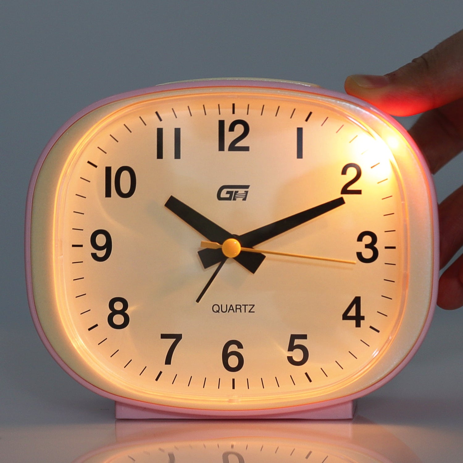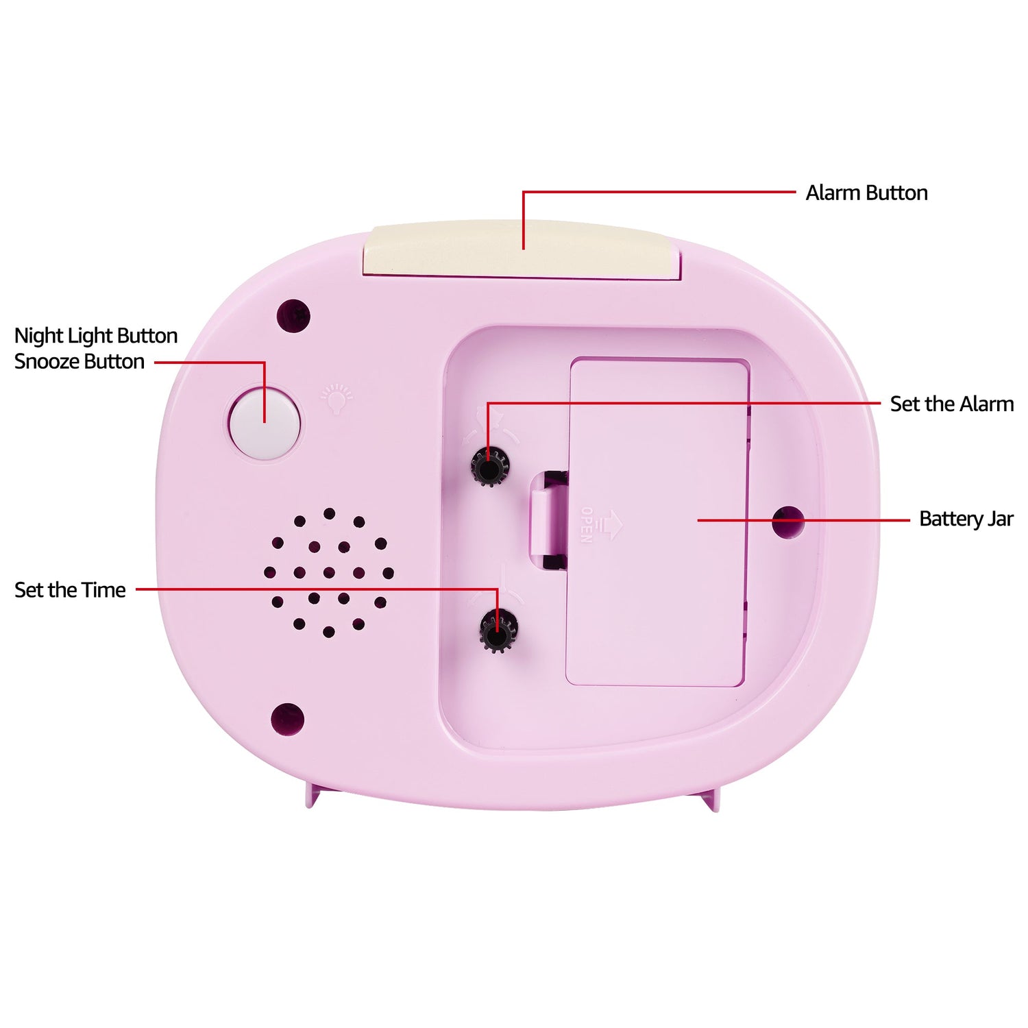 Press the night light button on the back of the alarm clock, the gentle warm yellow light will glow across the entire dial, and it will last 4 seconds that makes the time clear to see at night. Bounce the alarm button on the top of alarm clock, the alarm status will be on; press down the alarm button and the alarm will be off.