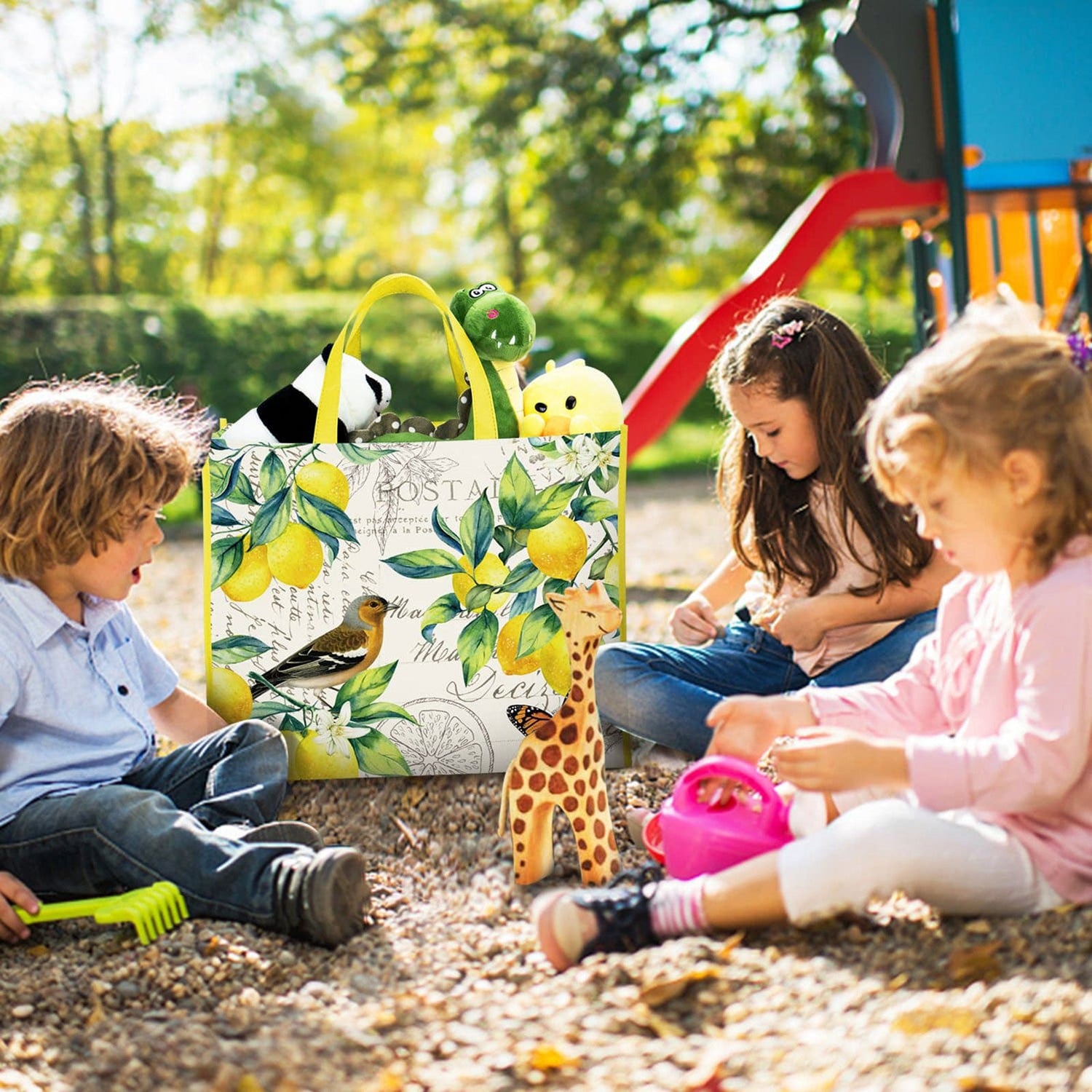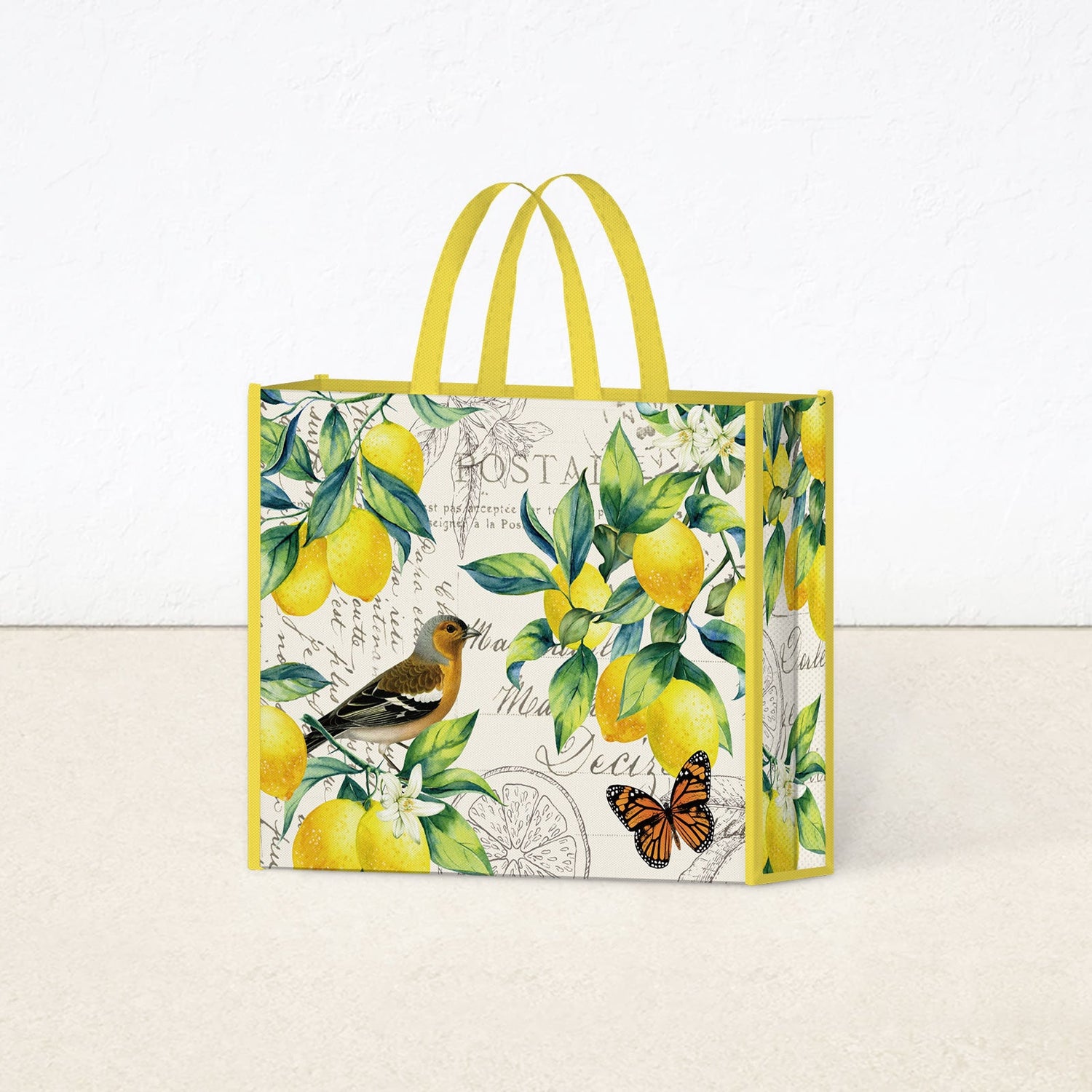 Personalized Designed: The patterns of NymphFable shopping bags are designed exclusively. These tote bags are decorated lots of lemons, a bird and a butterfly standing among them, people may feel the peace of nature when using these tote bags.