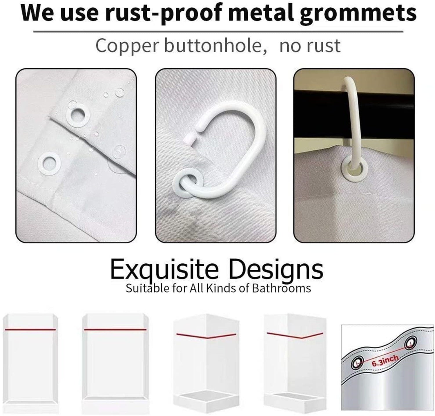 Reusable polyester, odorless, heavy fabric 150GSM, thick and durable; Non-vinyl, Non-PEVA, Non-formaldehyde. To make sure of the quality, the shower curtain has passed SGS detection (Report No. SL62006287352101TX), you can contact us for the complete report. We care about every customer as our family member.