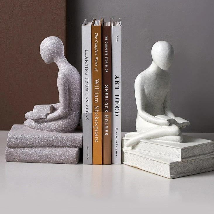 Enjoy these abstract people statues in any space. The statues show different people including an abstract man and a woman relaxing on stack of books. The statues have a sophisticated abstract look. These statues look great grouped together or individually to make an artistic statement in any space.