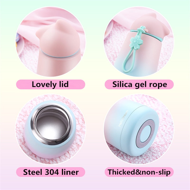 This Portable Thermos Cat Bottle is made with high-quality material, Such an adorable cat ear design. Perfect gift for all occasions. Best gift for your friends.