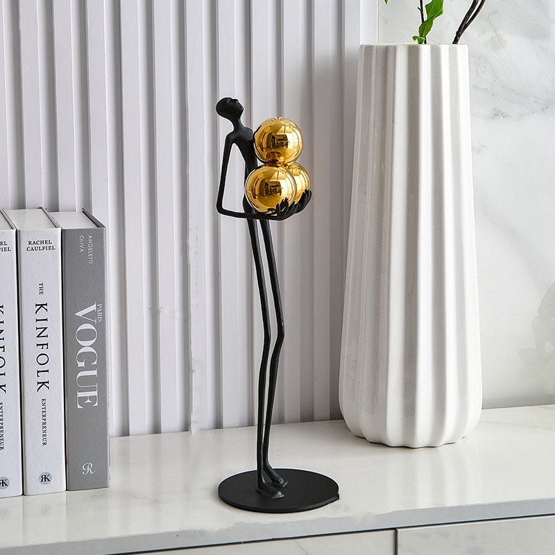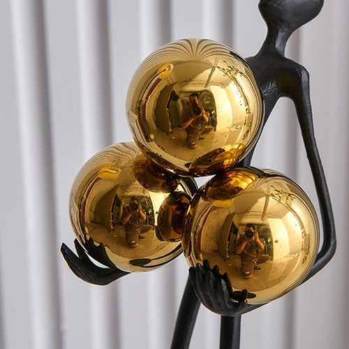 Let your burdens be carried away with this minimalistic modern statue. The slender look highlighted by the golden orbs gives this statue a unique look.