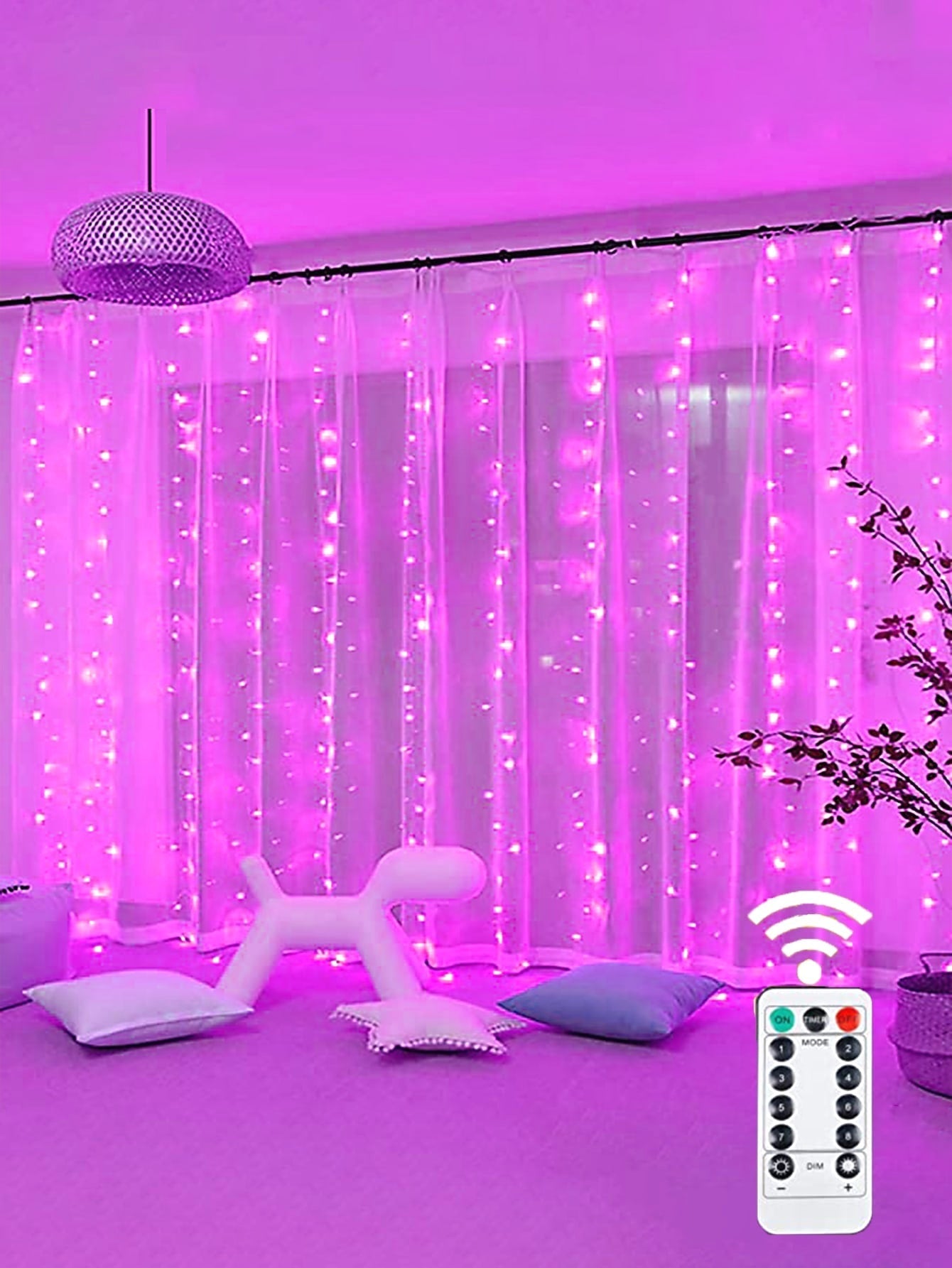 Control Curtain Decorative String Light with 300pcs Bulb Remote - Novelty Lighting - Pink / one-size ist auf Lager und wird versandt, sobald es wieder verfügbar ist