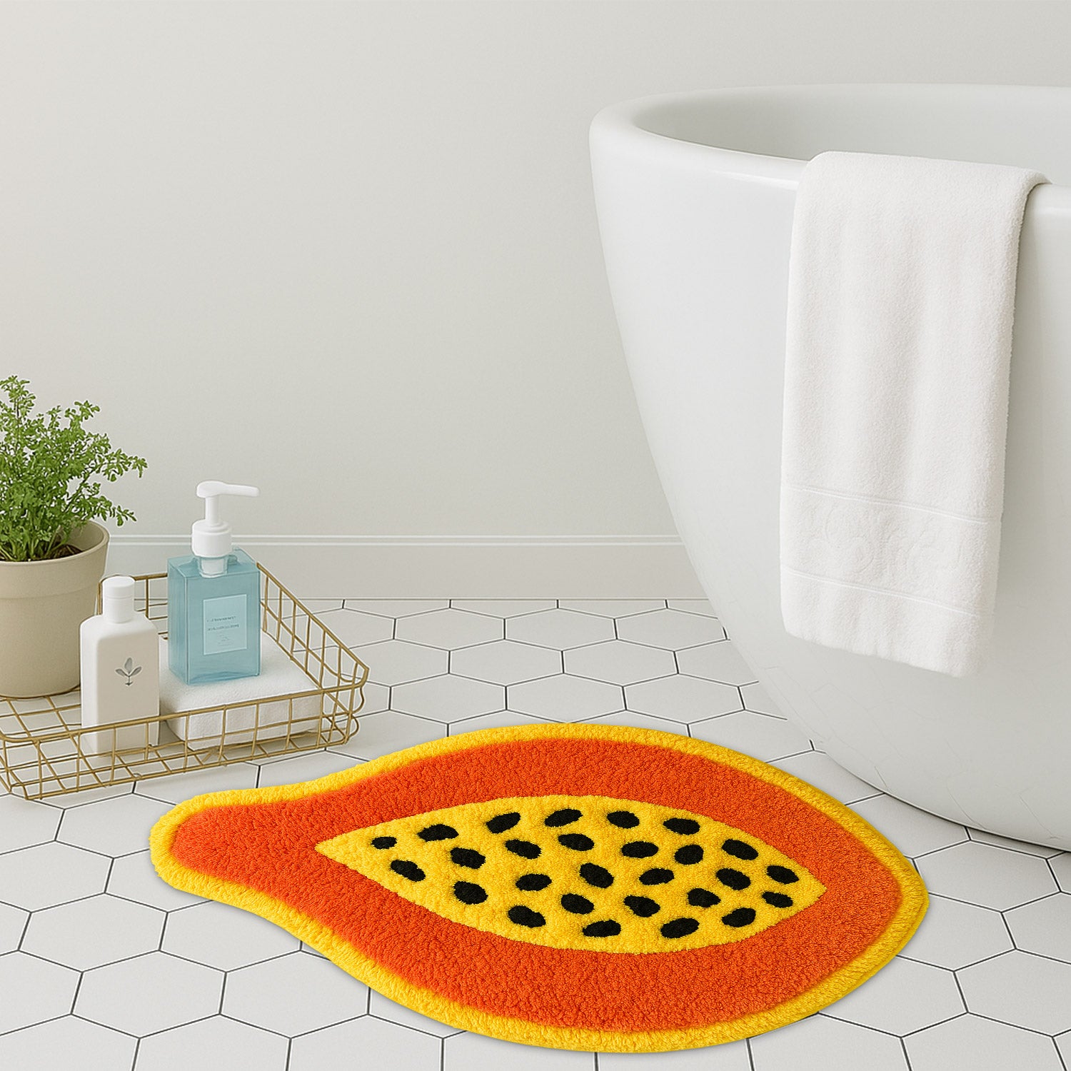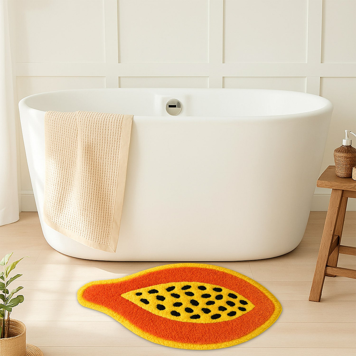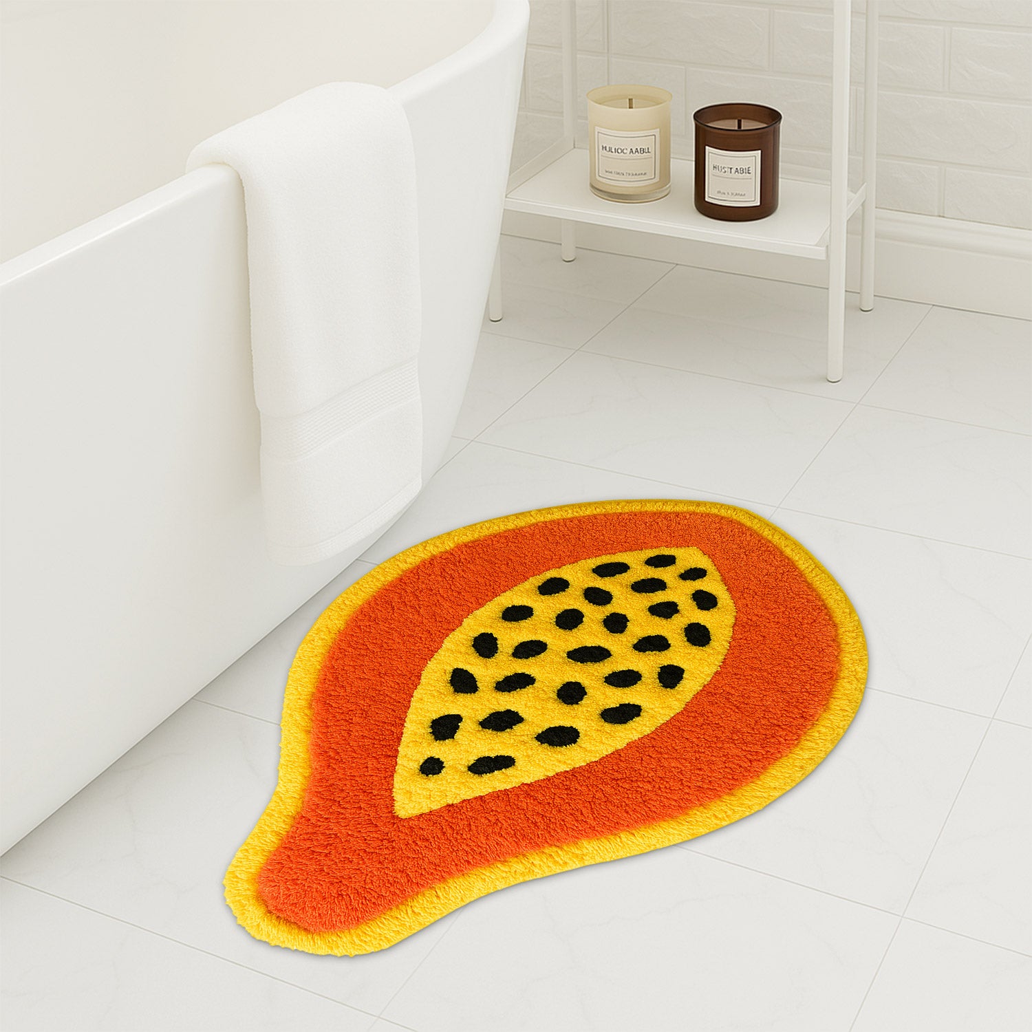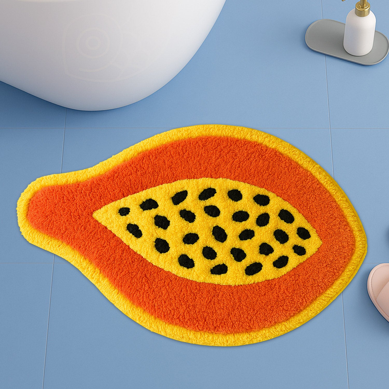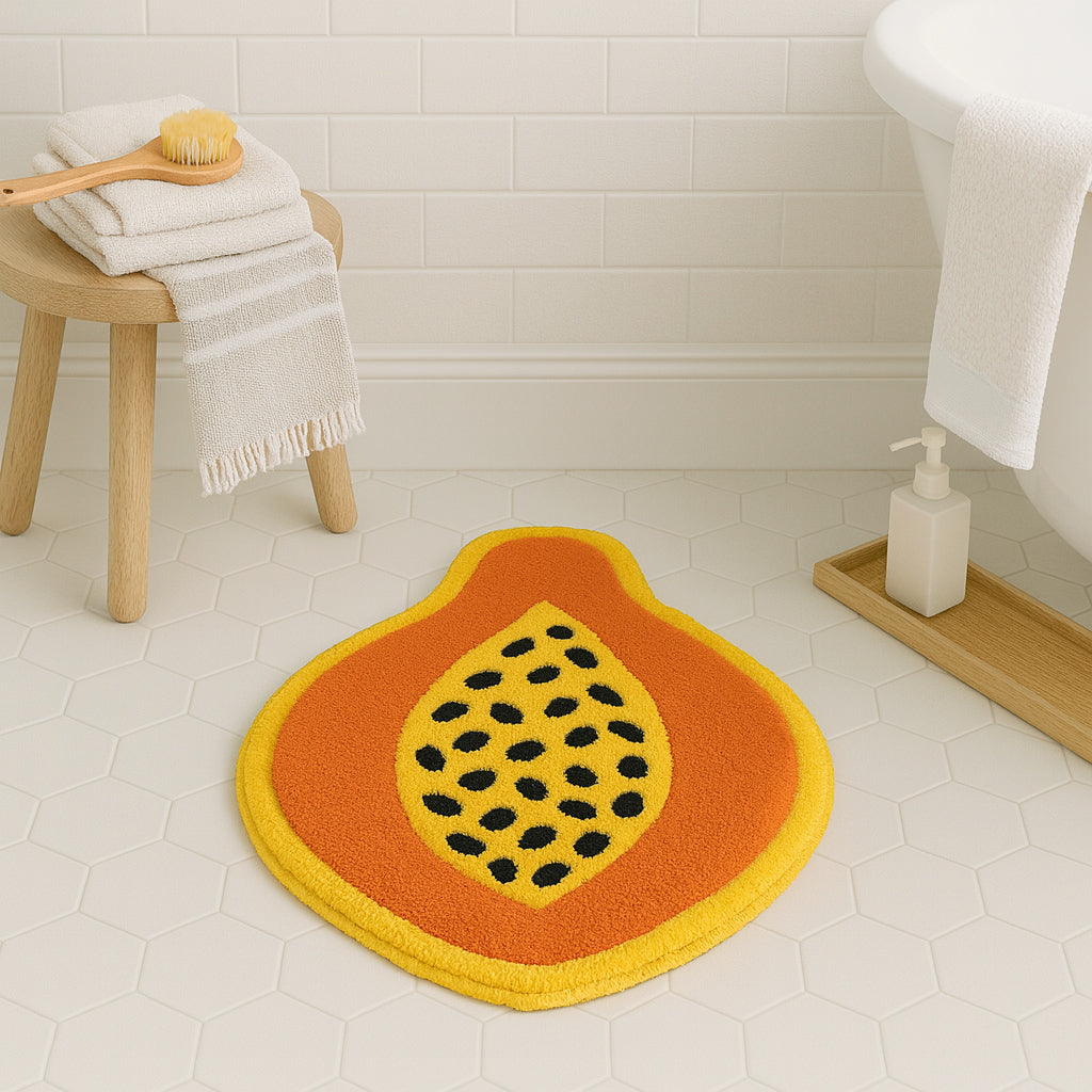 Feblilac Papaya Shaped Tufted Rug – Fun Tropical Fruit Design | Soft & Colorful Bathroom Mat