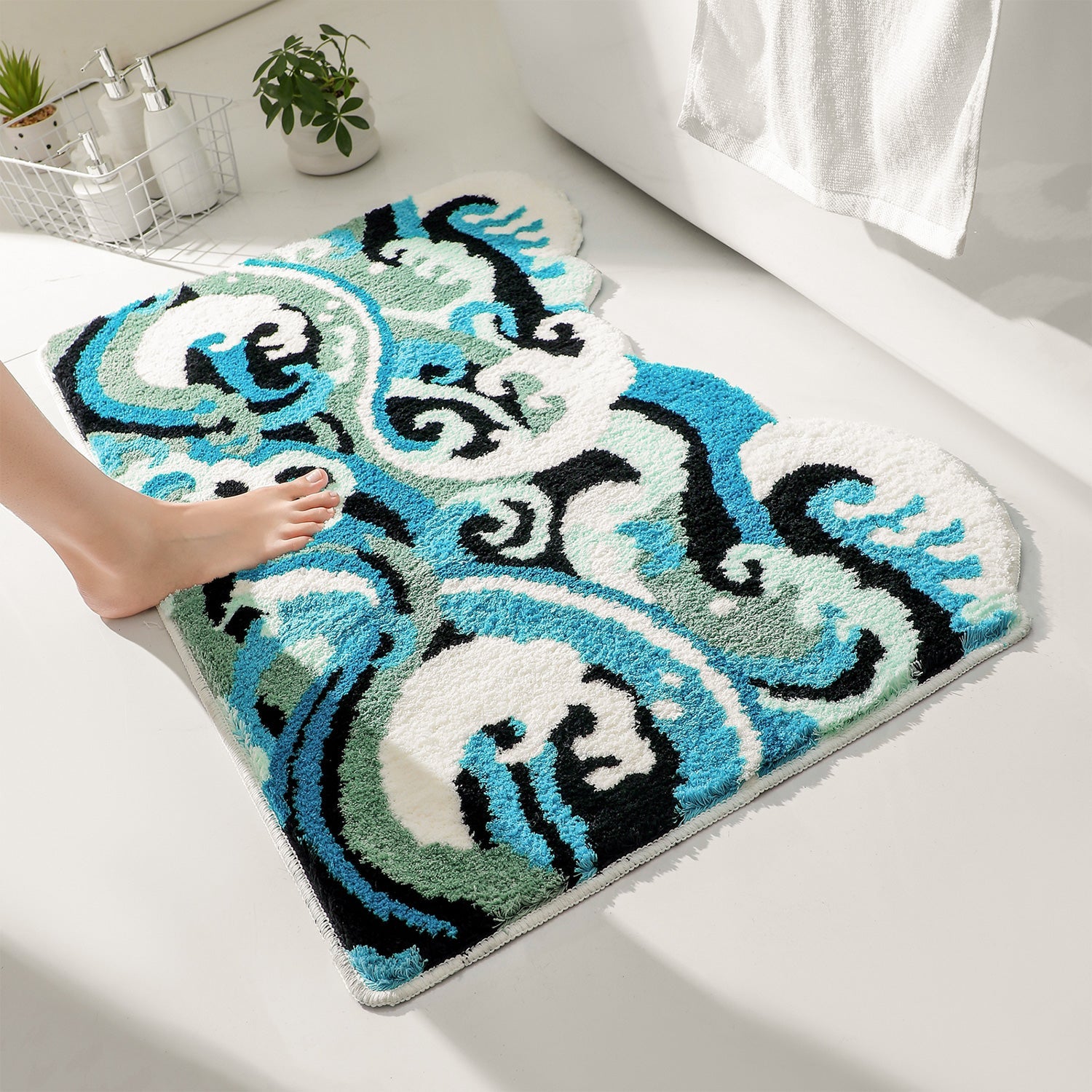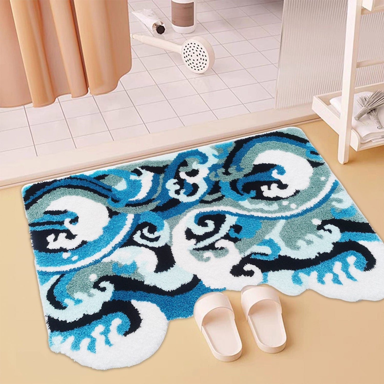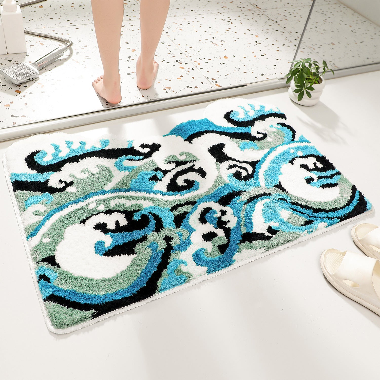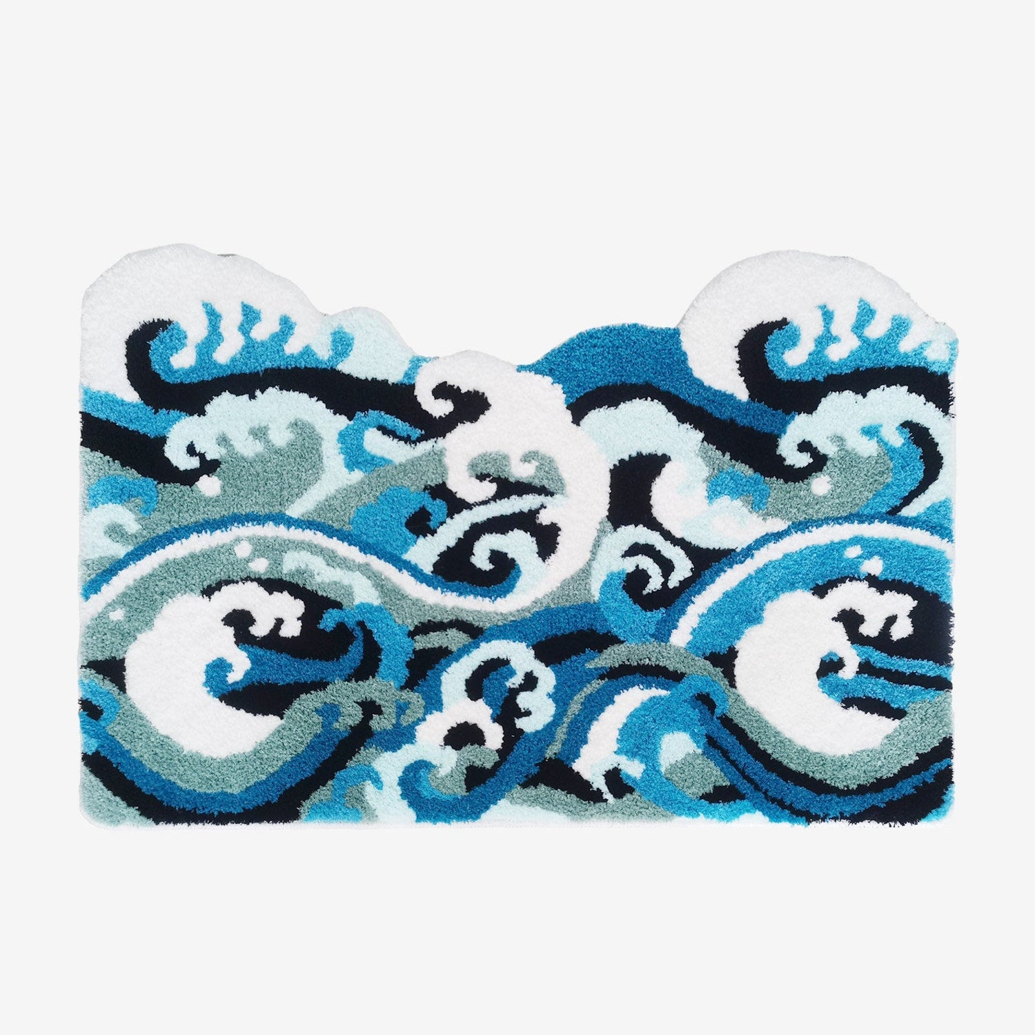 Great Wave Bath Mat, Blue and White Ocean Style Bathroom Rug, 60x90cm or 24''x35''