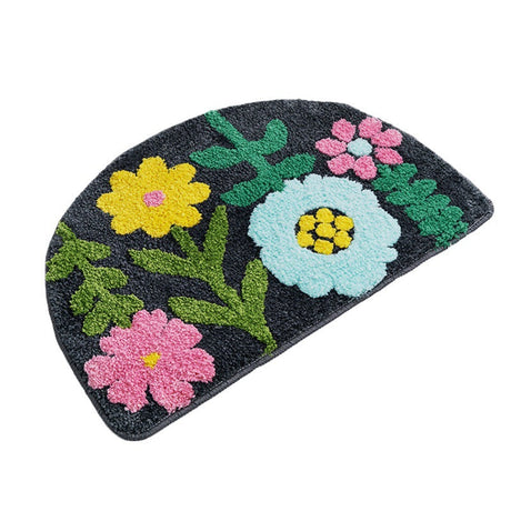 Feblilac Blue Background Daisy U-Shaped Tufted Bath Mat