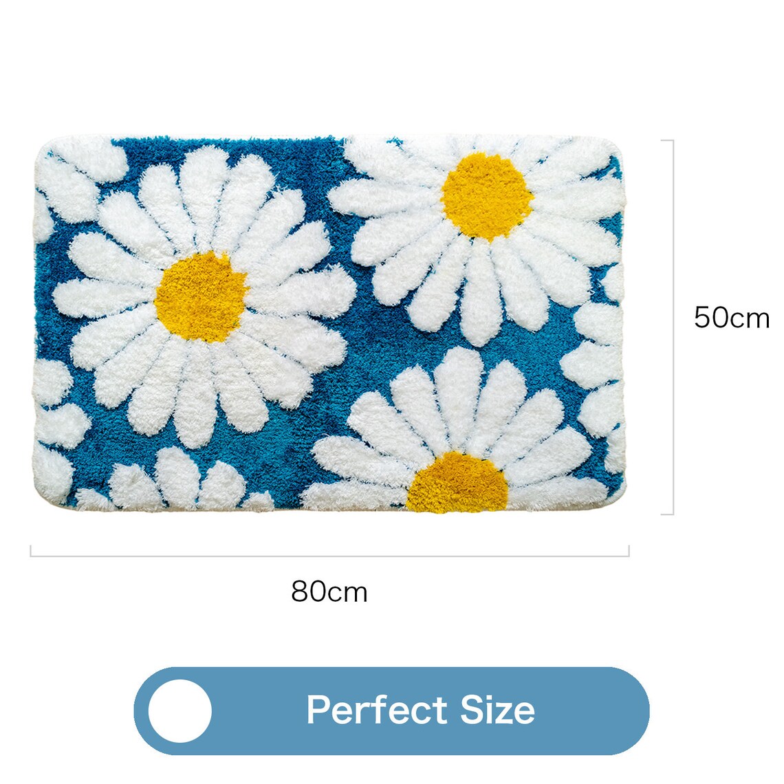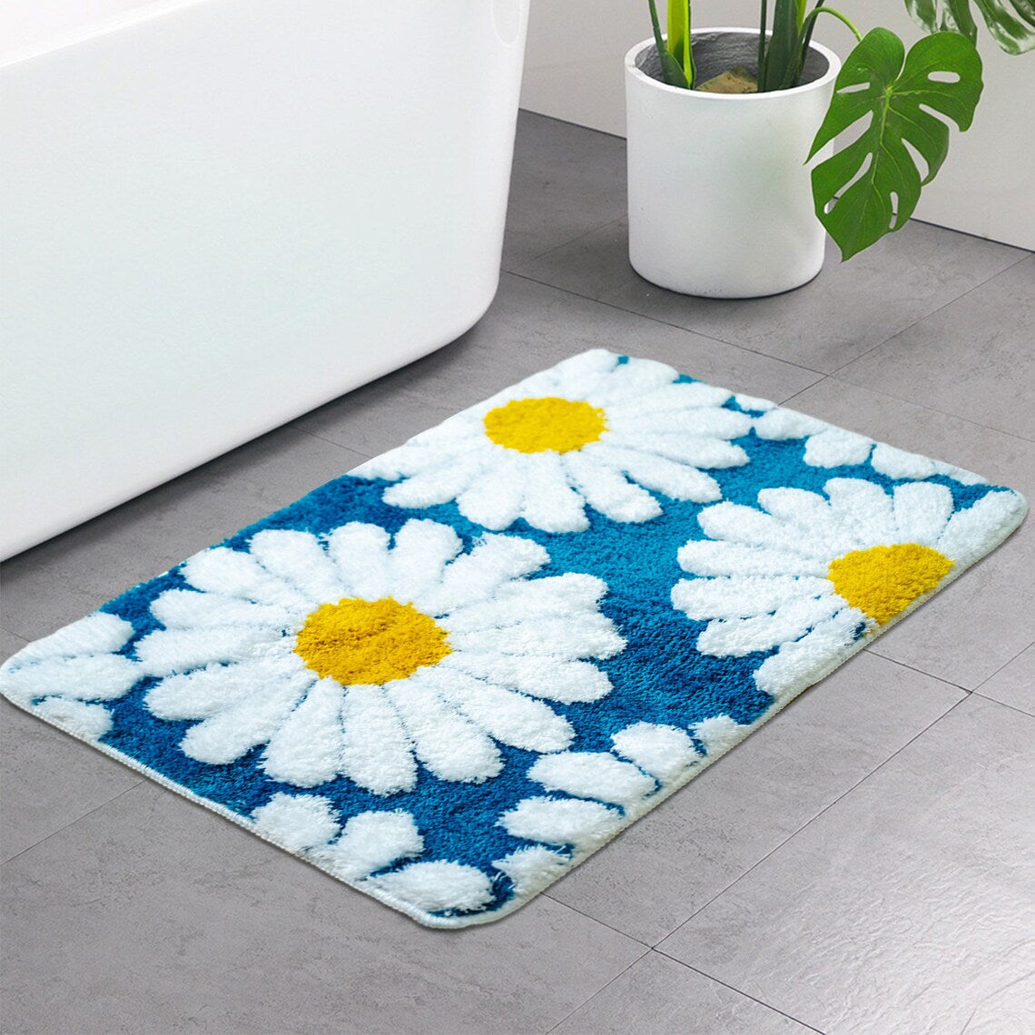Feblilac Bright Blue Daisy Tufted Bath Mat