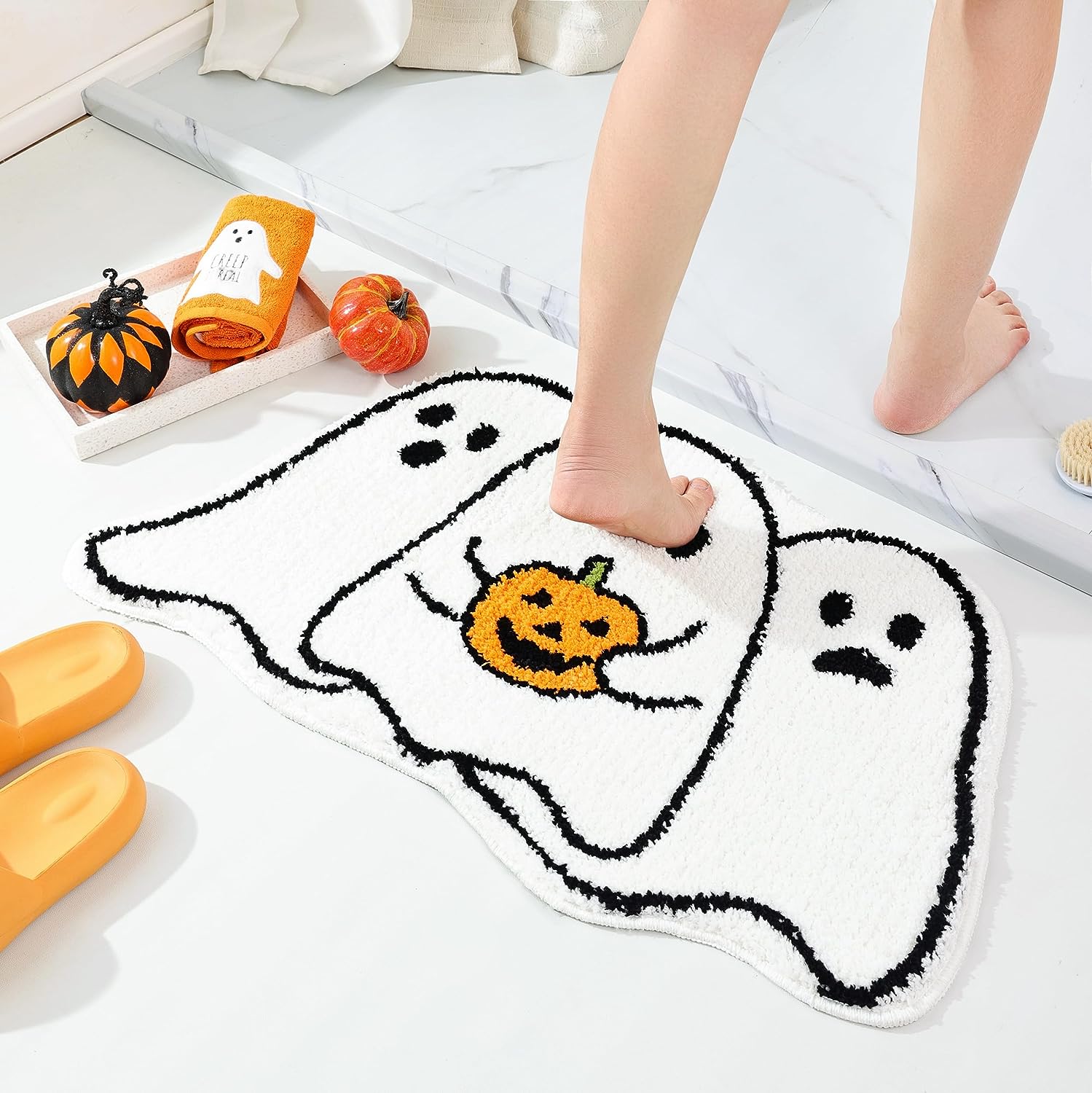 Feblilac Halloween Ghost Bath Mat for Bathroom, Cute White Ghost Bathroom Rug