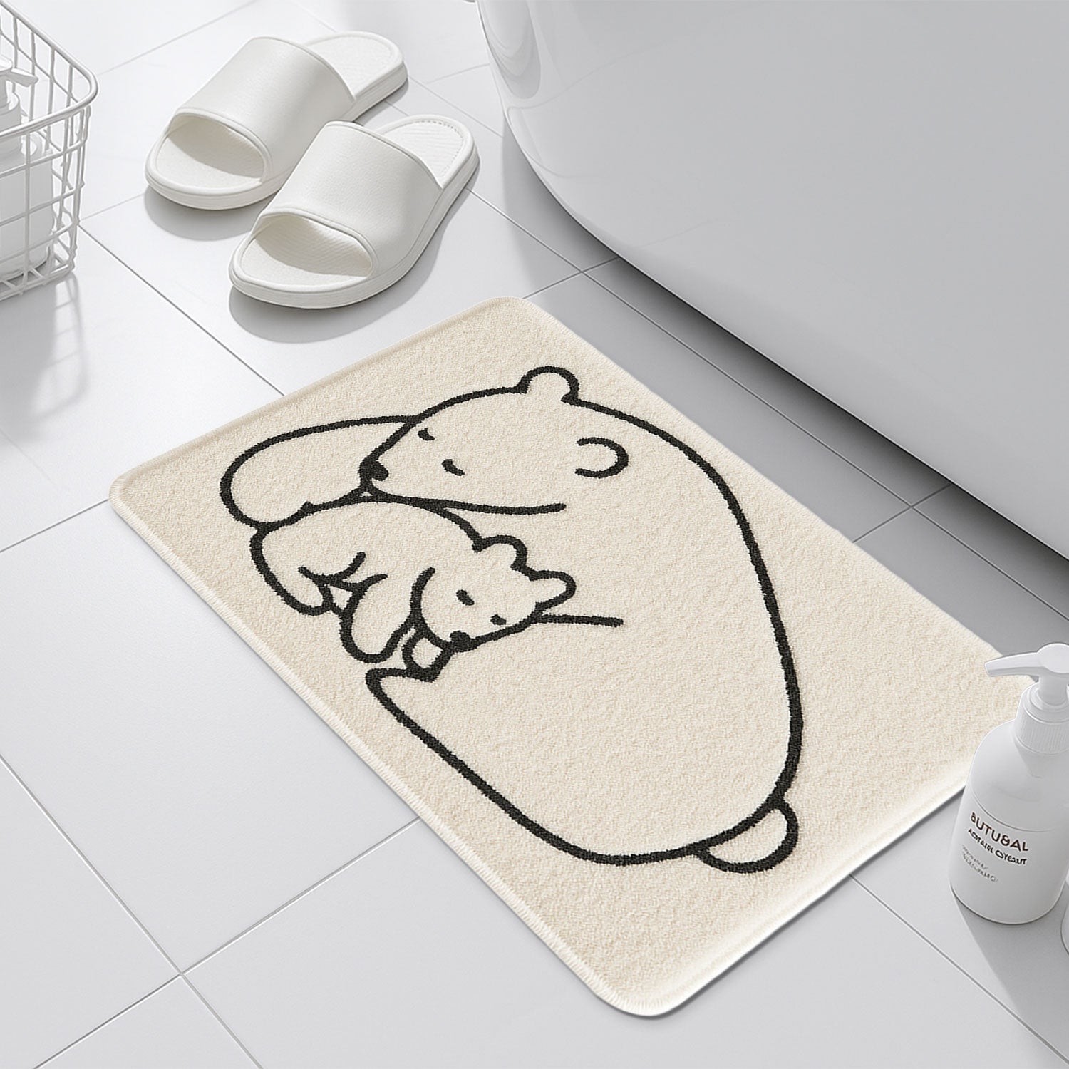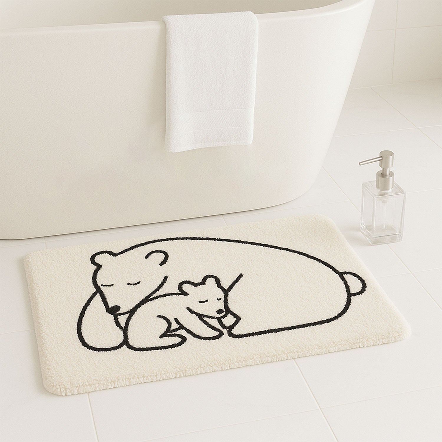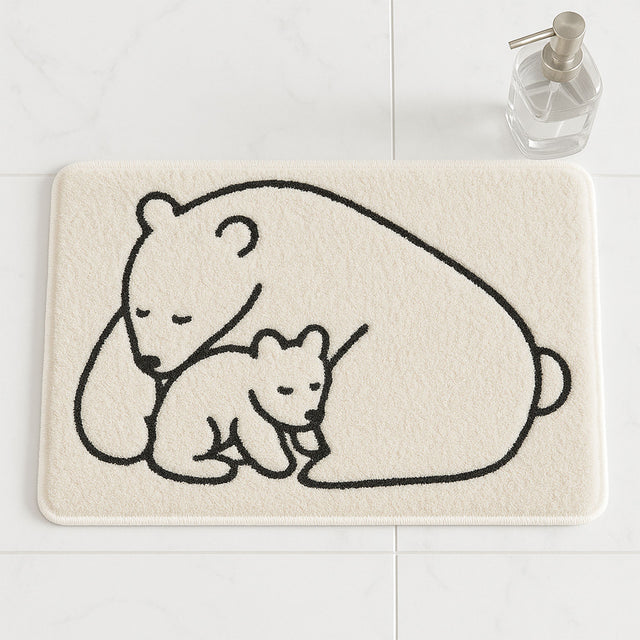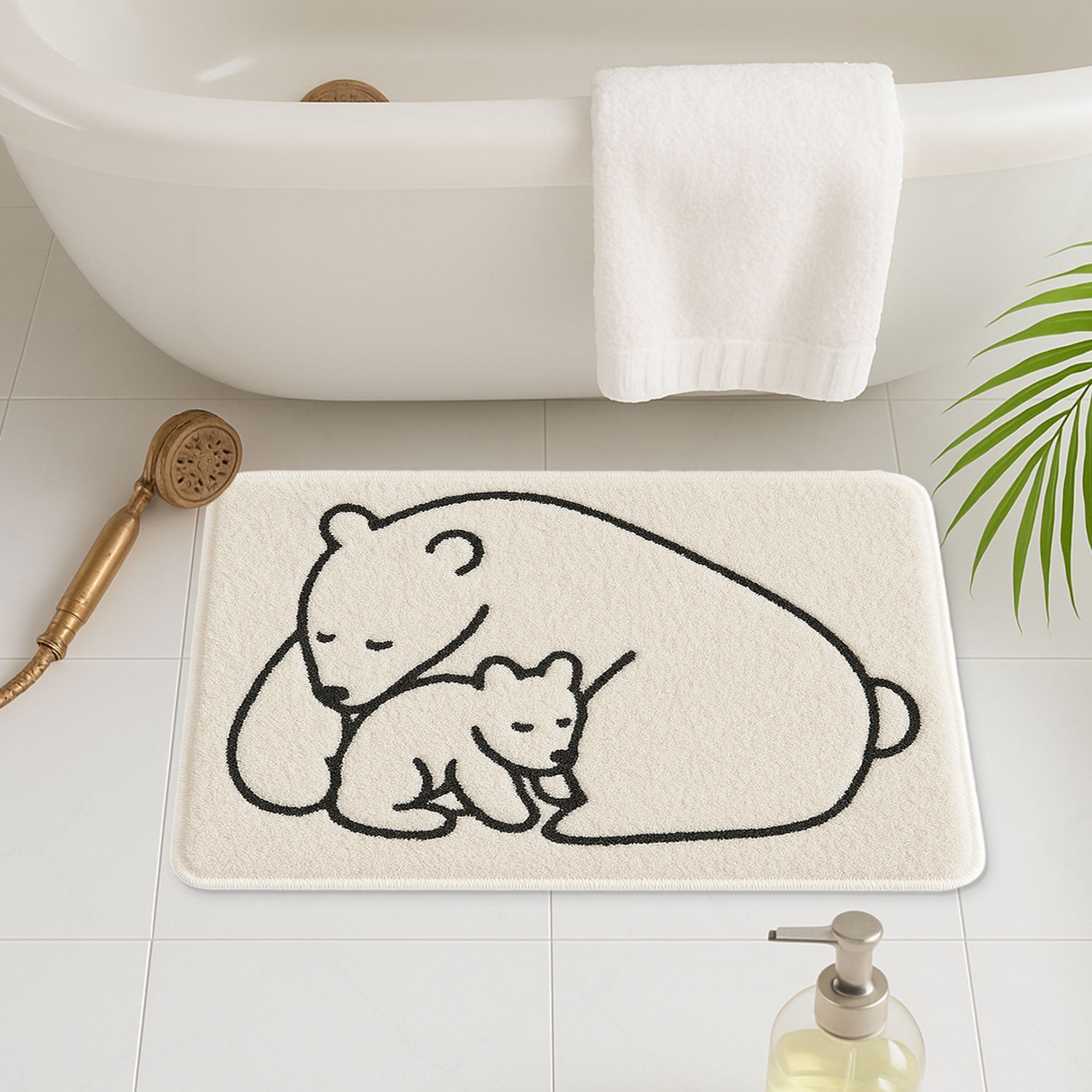 Feblilac Minimalist Bear & Cub Bath Mat | Nordic Style Soft Non-Slip Bathroom Rug