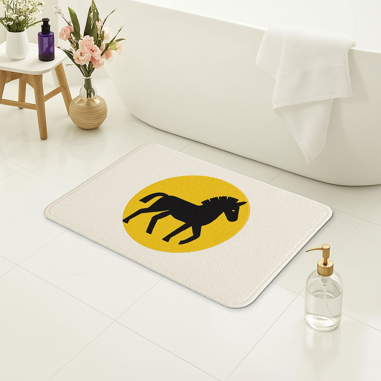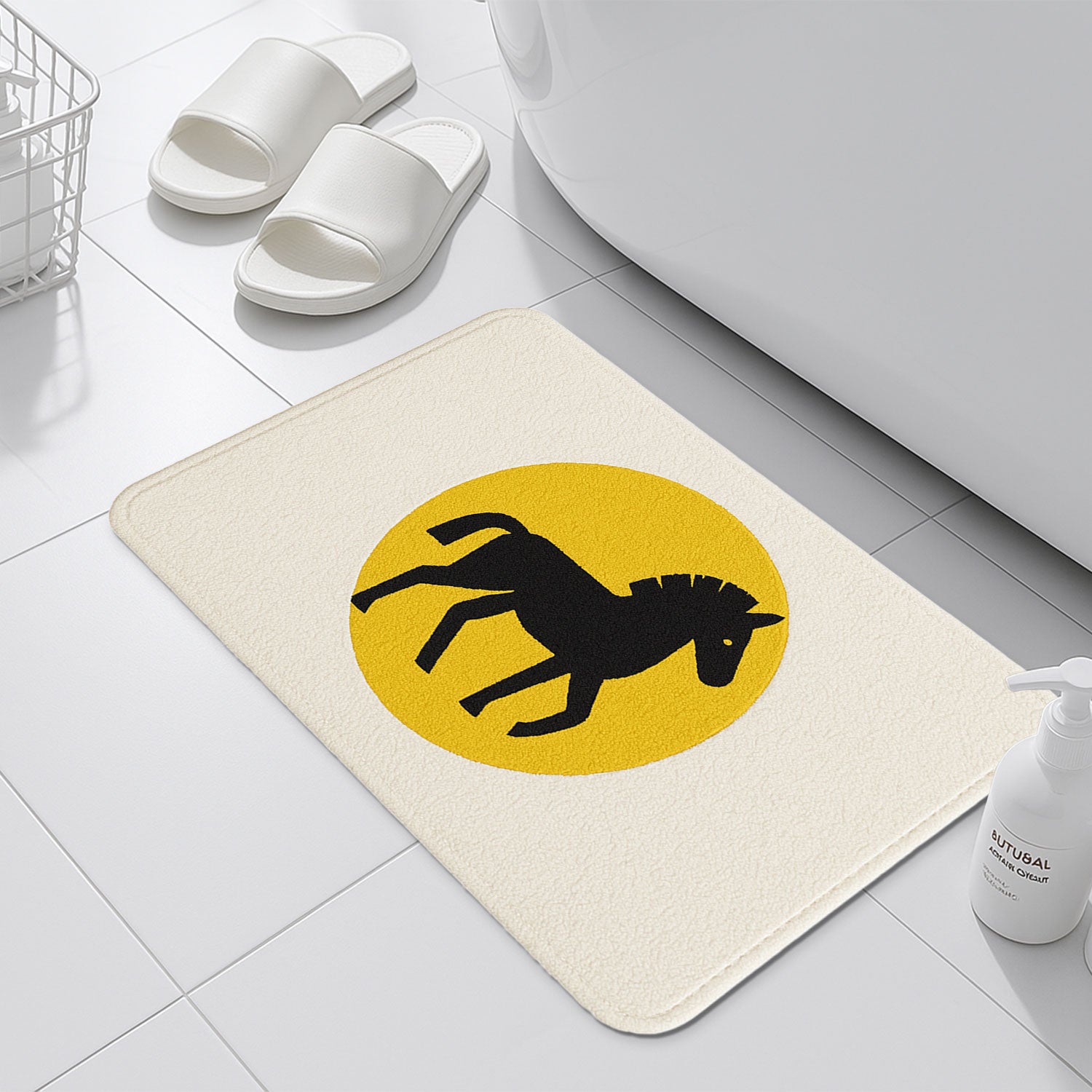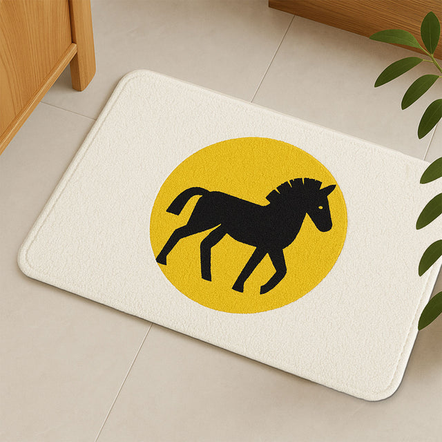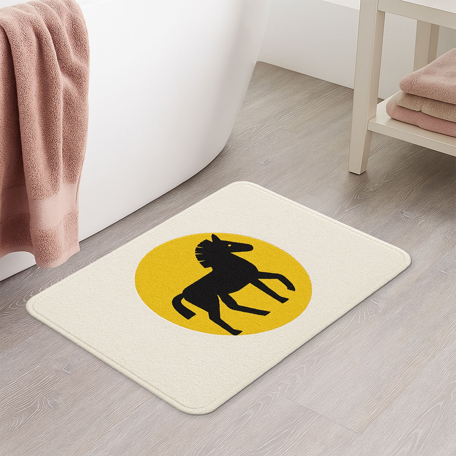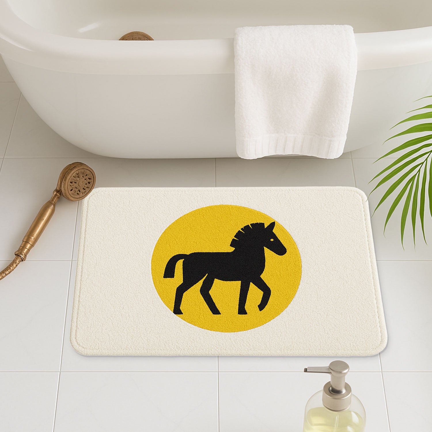Feblilac Minimalist Horse Bath Mat – Soft Non-Slip Rug with Yellow Circle Accent