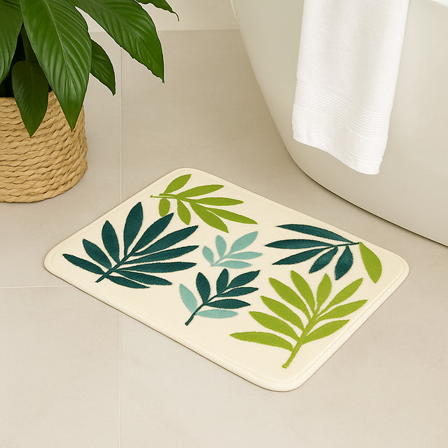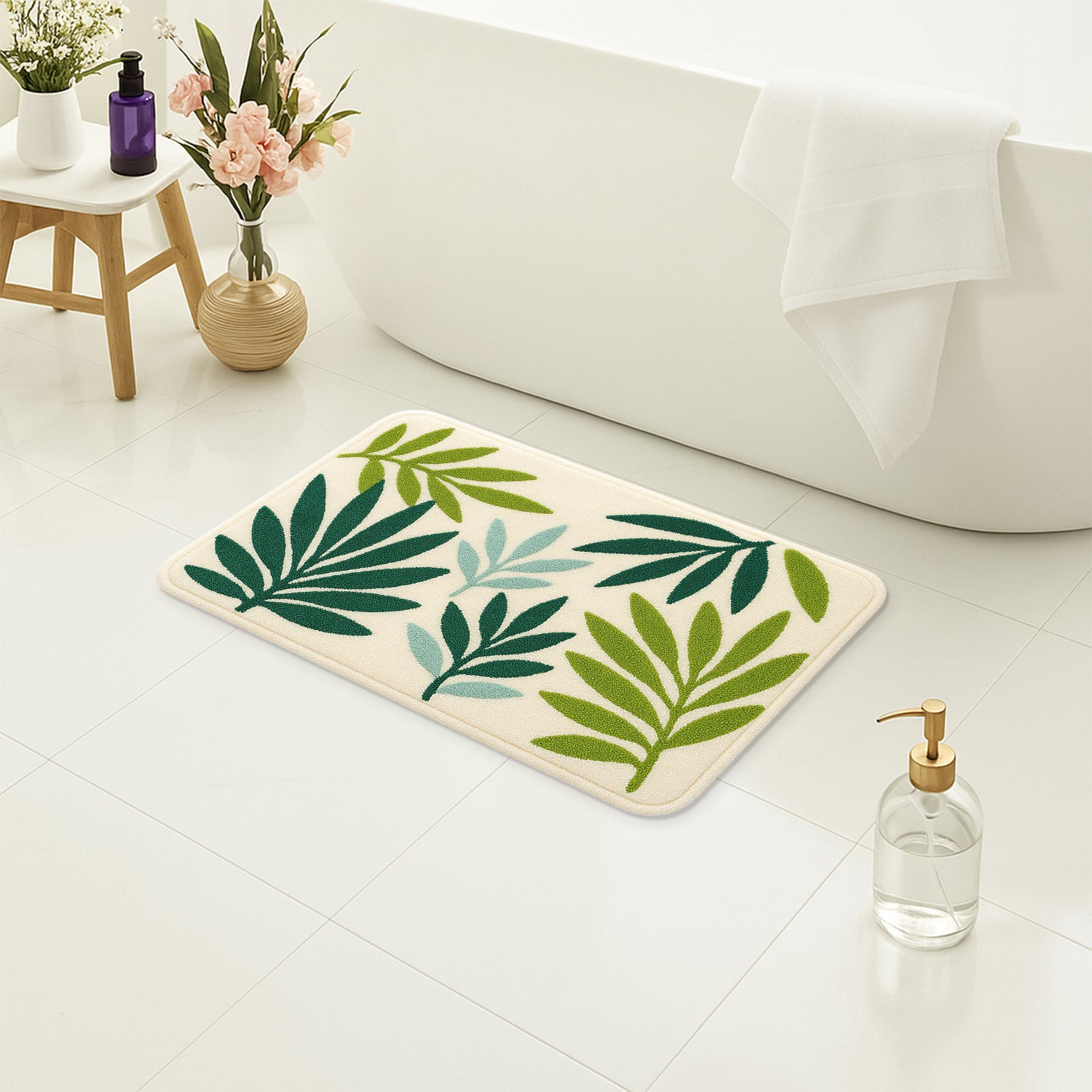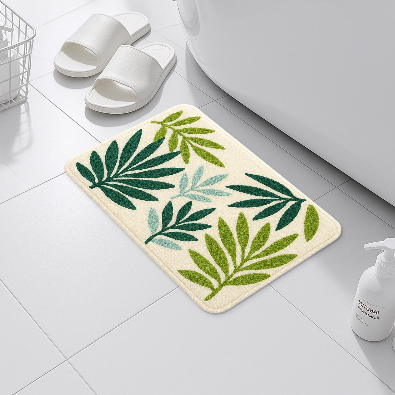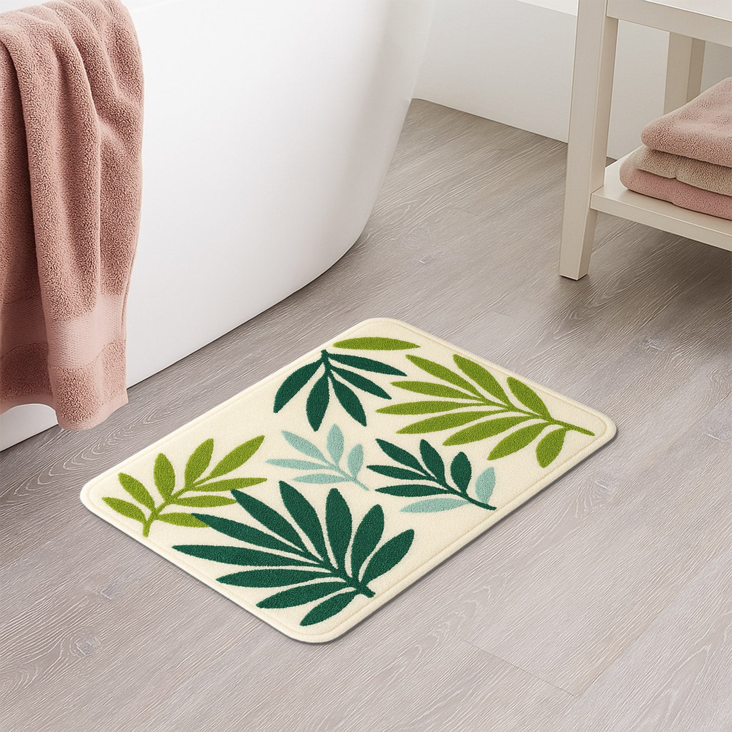 Feblilac Tropical Leaf Bath Mat – Soft Non-Slip Botanical Rug for Bathroom, Kitchen, or Entryway
