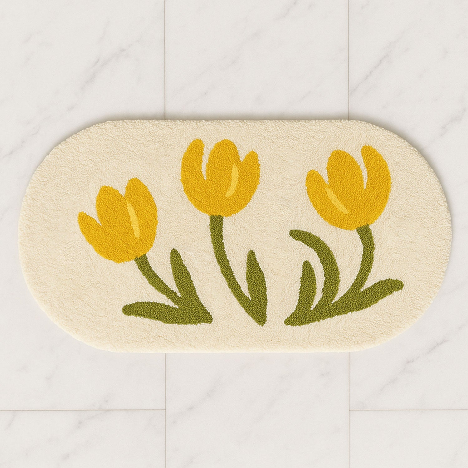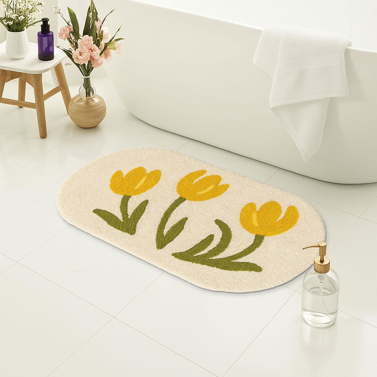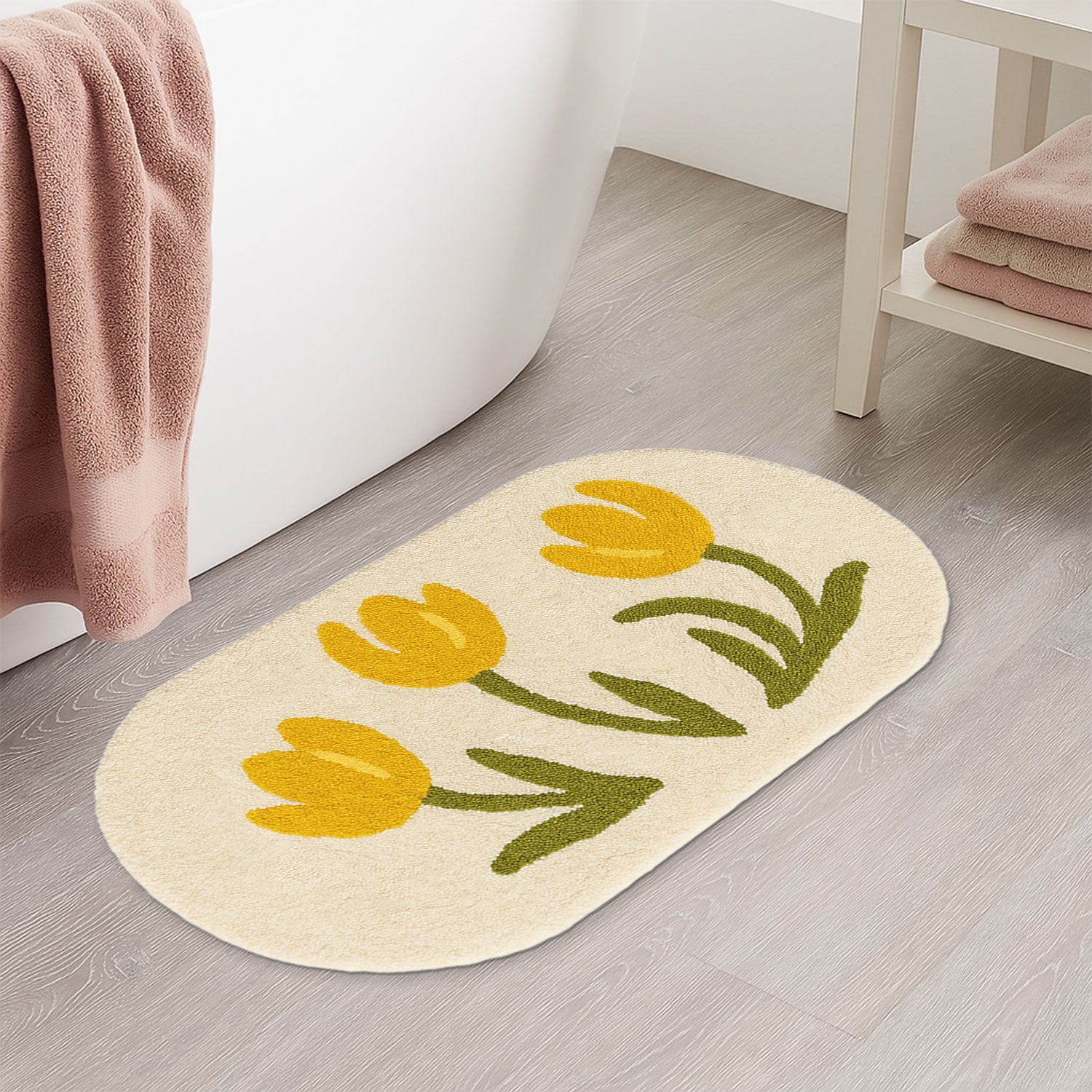 Feblilac Yellow Tulip Bath Mat – Soft Floral Non-Slip Rug for Bathroom or Entryway