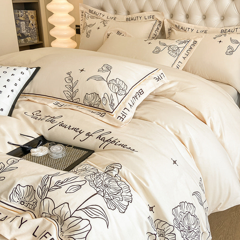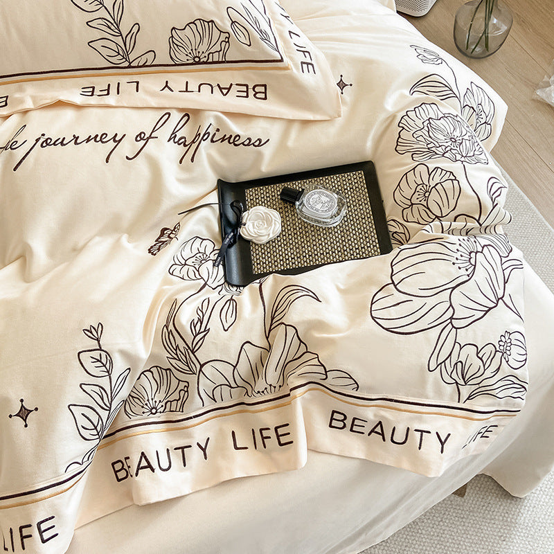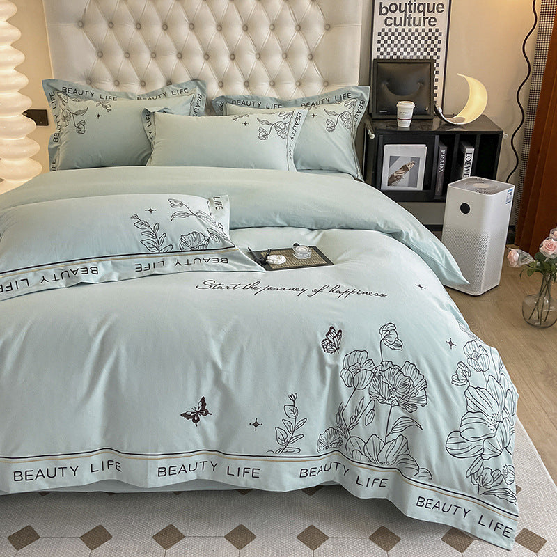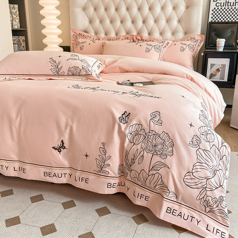 100% Cotton Sueding Flower Print Duvet Cover Bedding Set