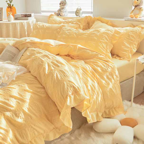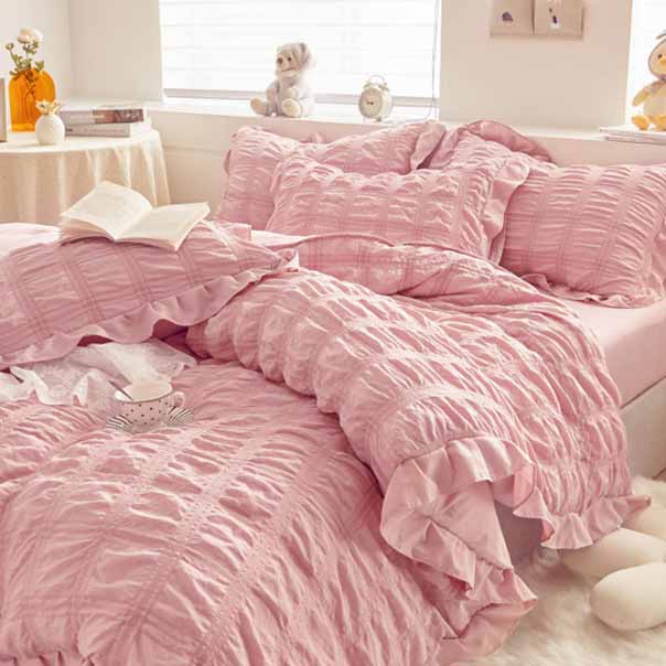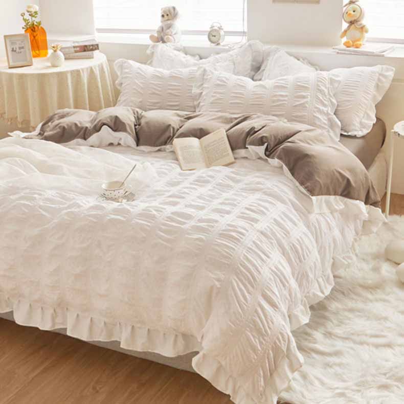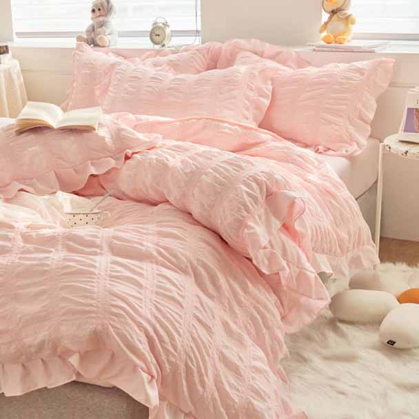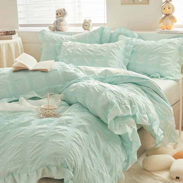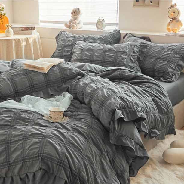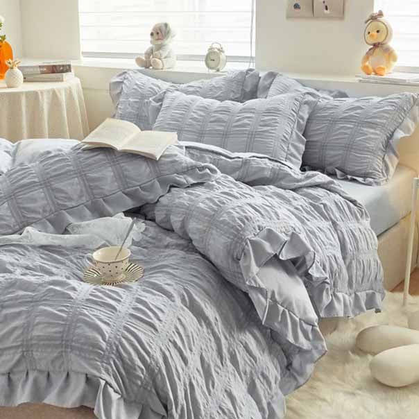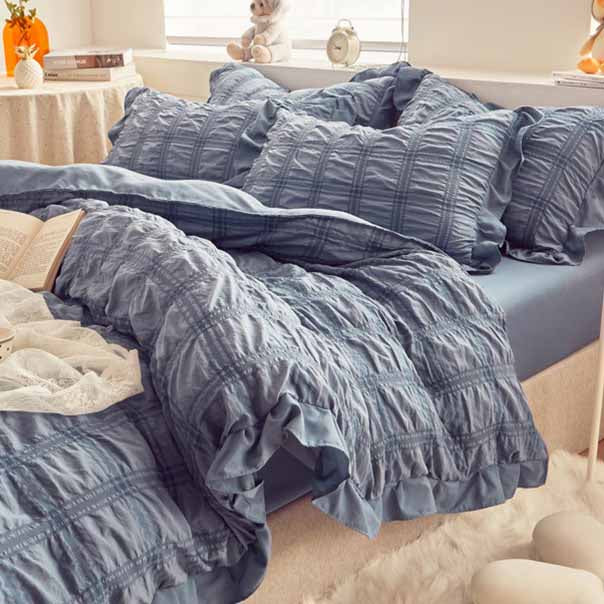 Solid Seersucker Poly Duvet Cover Bedding Set