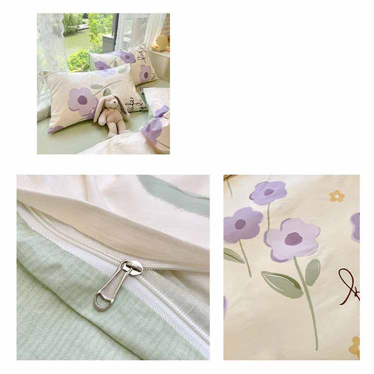 Purple Flowers Bedding Set Washable 60s Cotton Duvet Cover Bedding Set