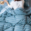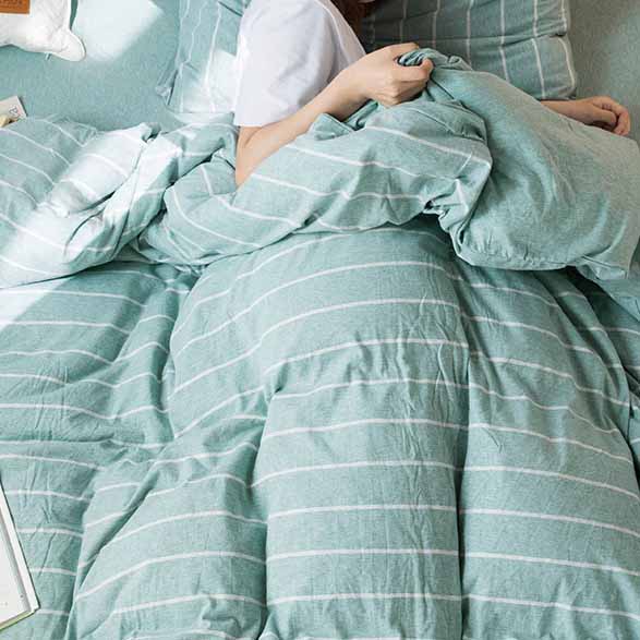 Green/Blue/Orange/Pink/Grey Yarn-Dyed Stripe Knit Fabric Duvet Cover Bedding Set Cotton Bedding Set
