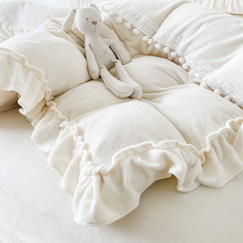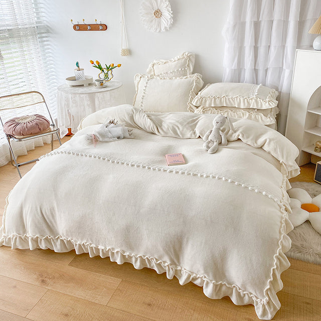 Thicken White Poly Milk Cashmere Flannel Duvet Cover Bedding Set