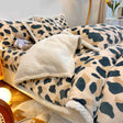 Poly Khaki and Green Leopard Print Cashmere Flannel Berber Fleece Duvet Cover Bedding Set