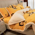 Poly Cute Yellow Lion Milk Cashmere Flannel Berber Fleece Duvet Cover Bedding Set