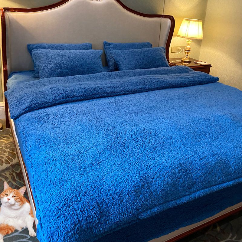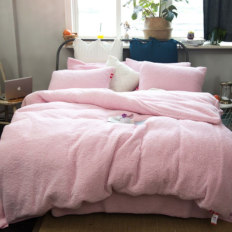 Poly Blue/Purple/Pink Milk Berber Fleece Duvet Cover Bedding Set