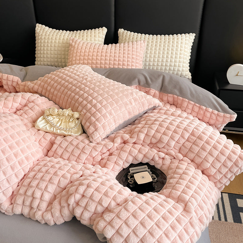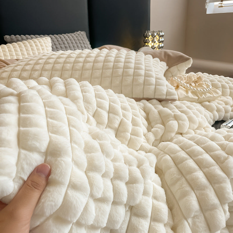 Solid Color Poly Rabbit Wool Flannel Puffy Duvet Cover Bedding Set