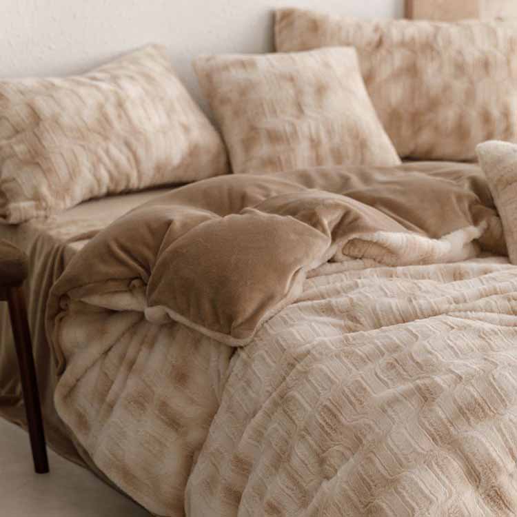 Poly Light Brown Gradient Rabbit Wool Milk Cashmere Duvet Cover Bedding Set
