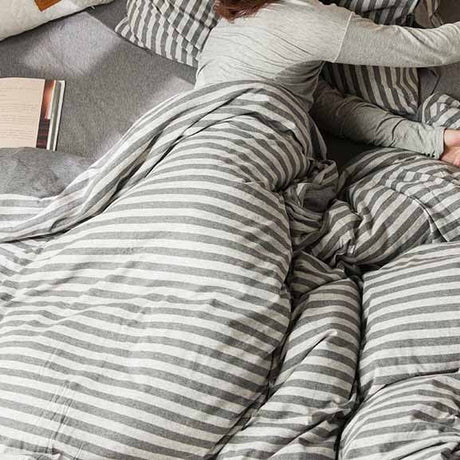 +3De $360.00 USDPrix unitaire /IndisponibleGrey Yarn-Dyed Stripe Knit Fabric Bedding Set Cotton Duvet Cover Bedding Set