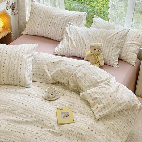 +4De $119.00 USDPrix unitaire /IndisponibleSimple Style Little Flowers Stripe Cream Bedding Set Washable 60s Cotton Duvet Cover Bedding Set