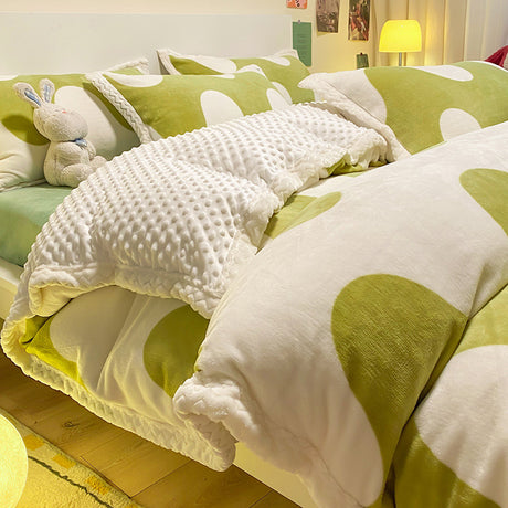 Swallow Gird Coral Fleece Pink/Grey/Green Duvet Cover Bedding Set