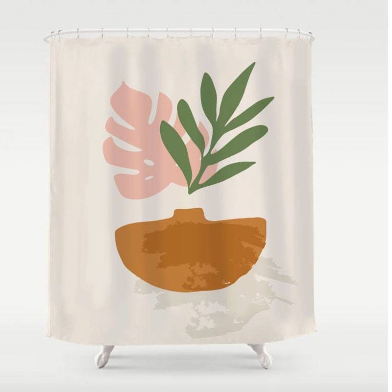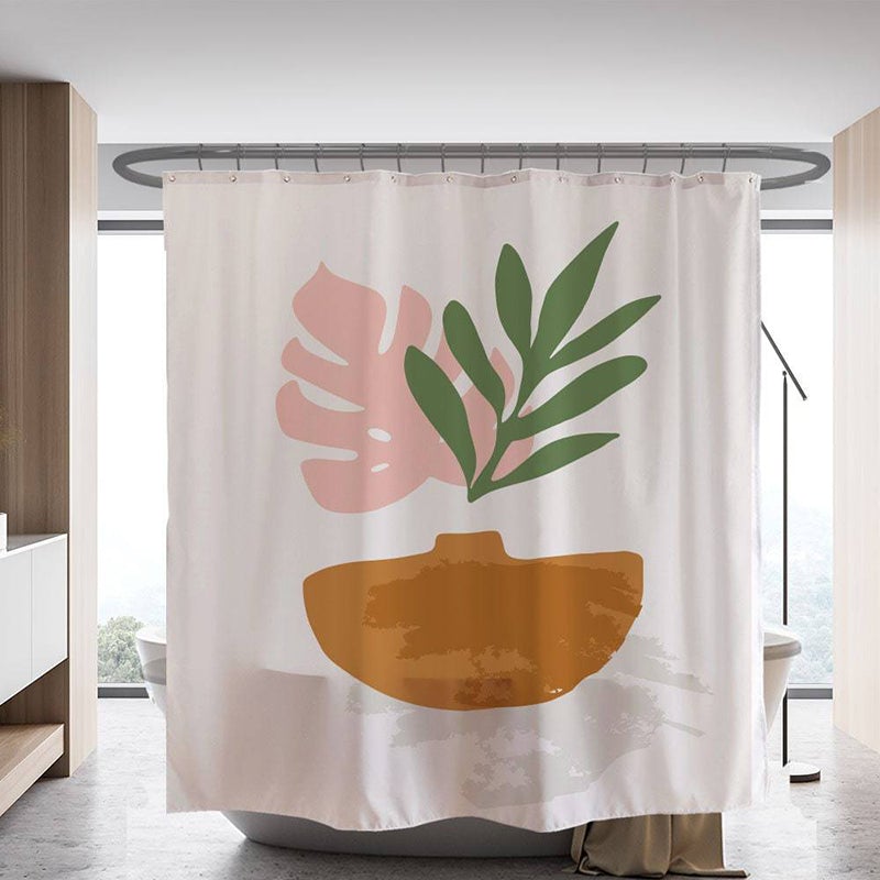 Modern Pink Green Leaves Shower Curtain