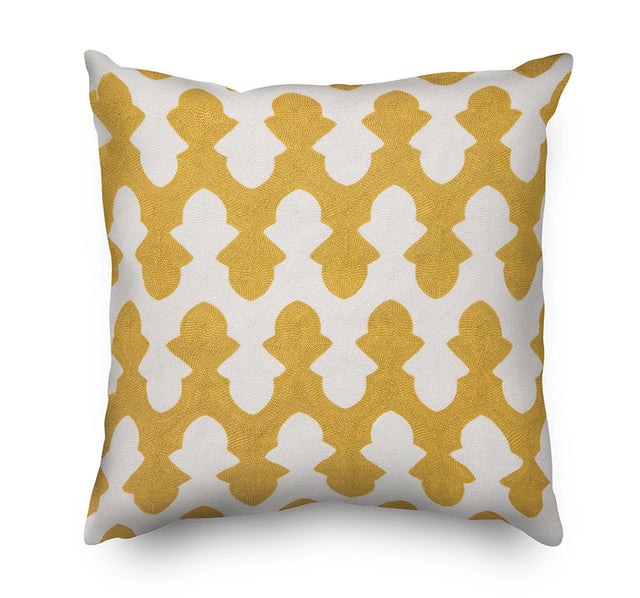 Yellow Geometric Pattern Embroidery Cushion Cover - Mustard Yellow and White