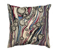 This brown, red and blue toned cushion is printed as ink bleed, marble painting effects for a soothing, natural feel. The fabric is polyester or cotton/poly mix home decor medium weight.