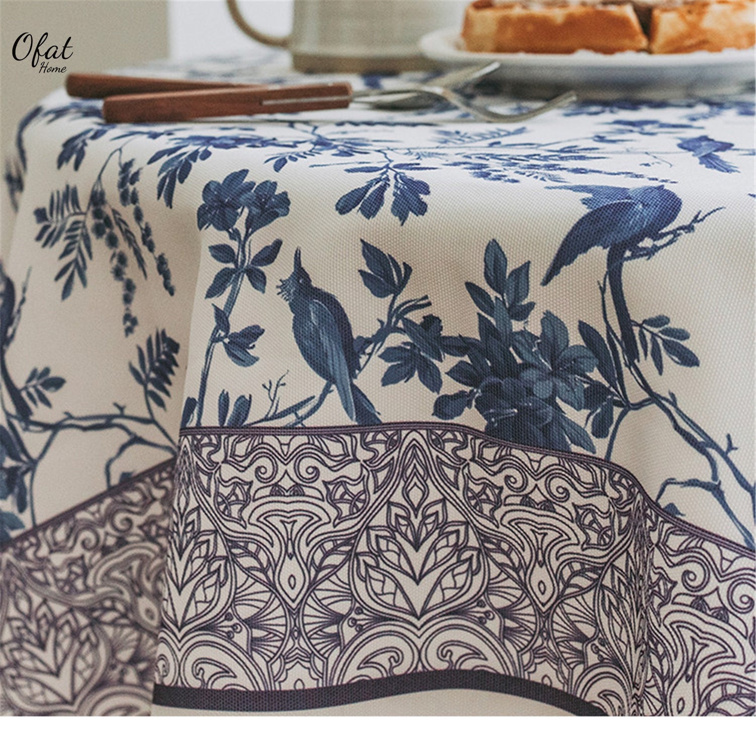 Celadon Pattern Rustic Tablecloth, Waterproof Classial Tablecloth,Tea Tablecover,Coffee Table Runner,Party Decor,Event Tablecloth
