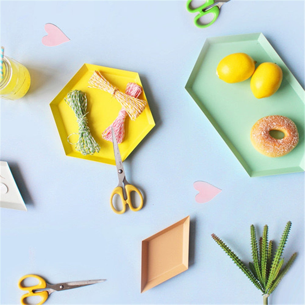 Sleek and minimal stainless steel geometric storage plates for decor, food storage, jewelry storage etc. Perfect as a Display Plate for Desktop Accessories, Combination Storage, Cake & Fruit Dessert Plate etc.