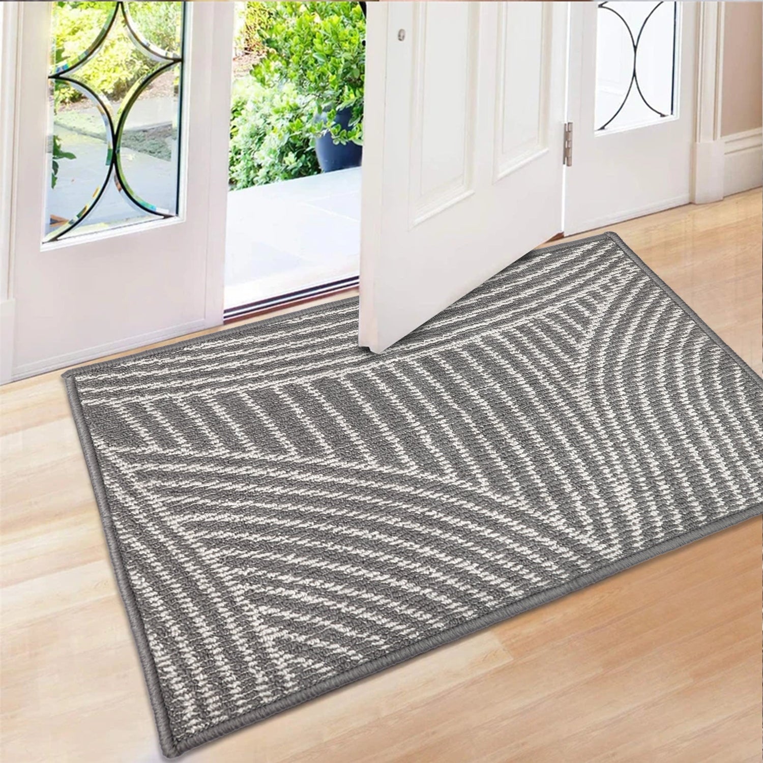 Durable Rug: It is composed of high-quality polypropylene fiber and environmentally-friendly TPR bottom. It adopts advanced locking fiber and neat overlocking technology to prevent silk and lose threads. The low-profile design is never stuck to the door.