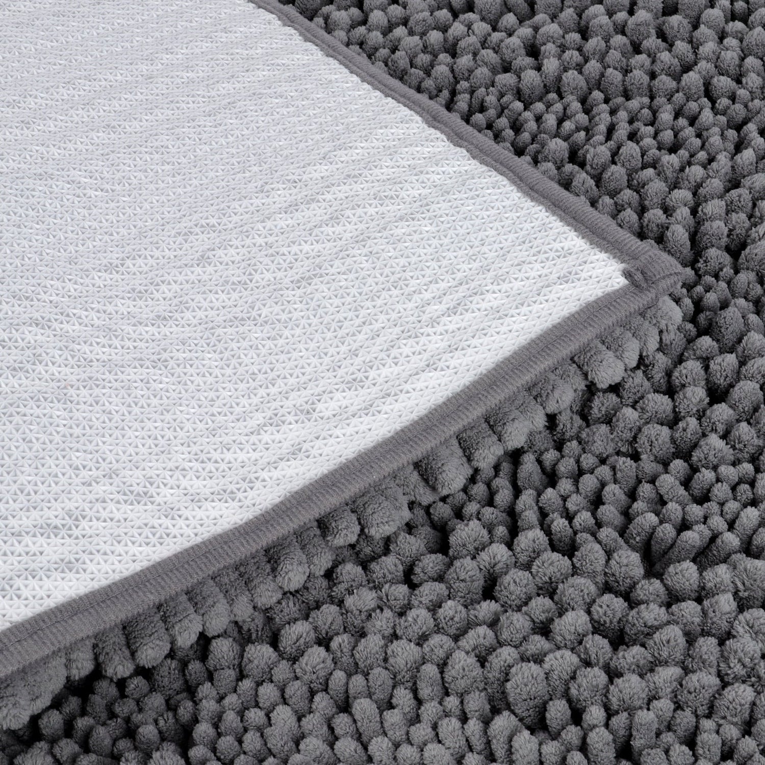 Soft and Comfortable: Our bathroom rug is made of denser and thicker fluffy chenille microfiber. Height of the fibers: about 2.5cm long. The bathroom carpet provides ultrasoft support for your feet. Skin-friendly and non-shedding. Perfectly pamper and soothe your tired feet.