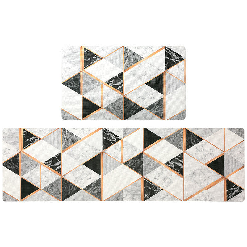 Feblilac Baroque Style Black Grey and White Geometric Pattern PVC Leather Kitchen Mat