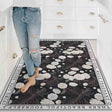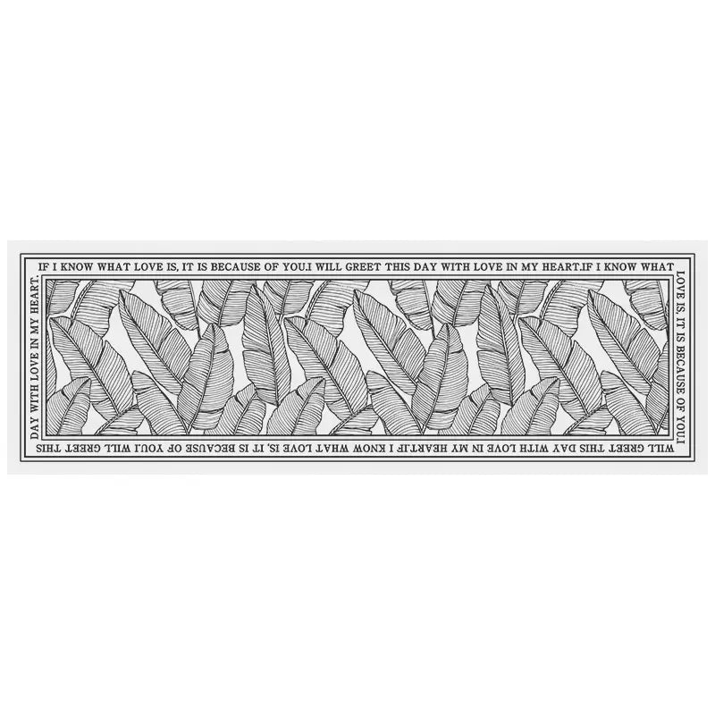 Feblilac Black and White Flower Leave PVC Leather Kitchen Mat