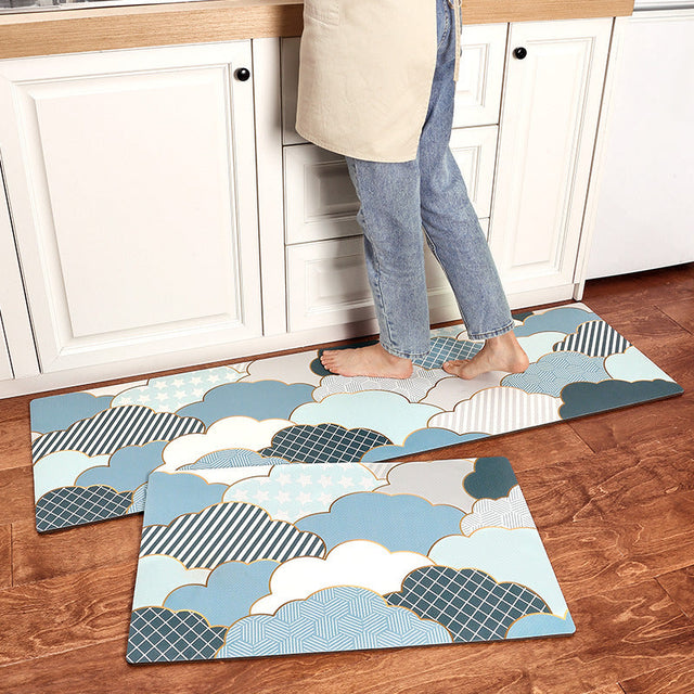 Feblilac Blue Abstract Cloud Art PVC Leather Kitchen Mat
