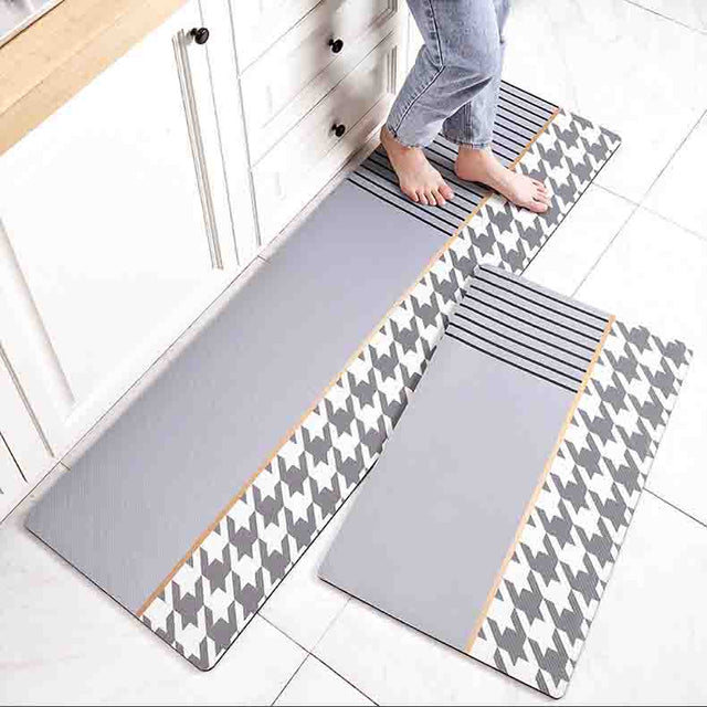 The Feblilac Blue and Grey Plaid Bird Pattern PVC Leather Kitchen Mat is easy to use, and it's also a wonderful décor to your home.