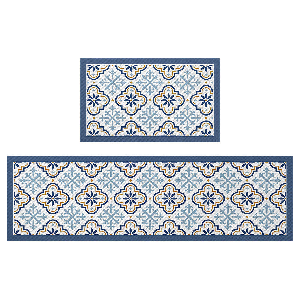 Feblilac Blue Flower Geometric Pattern PVC Leather Kitchen Mat - 17.7"x29.5",or 45cm*75cm est en rupture de stock et sera expédié dès qu’il sera de retour en stock.